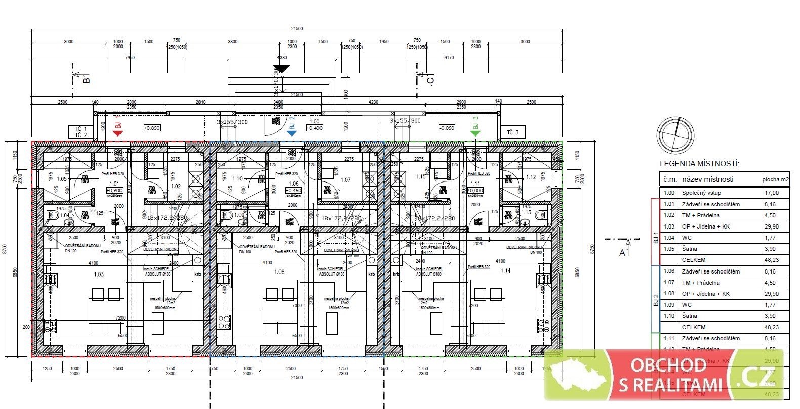 Každá z jednotek má dispozici 4+KK s užitnou plochou 94 m2. V dispozičním uspořádání každého z bytů nechybí technická místnost nebo šatna! Půdorysy s legendou i pohledy přikládáme.