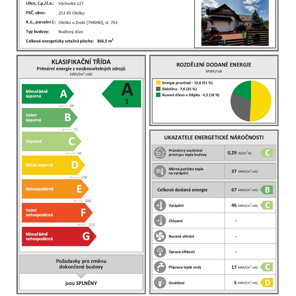 Dům na kraji zástavby s fantastickým výhledem je kolaudovaný v roce 2001. V letech 2024 - 2025 prošel naprosto zásadní rekonstrukcí exteriéru. Nová fasáda se zateplením, nová střecha včetně izolace, trojskla, tepelná čerpadla vzduch-vzduch a FVE o výkonu 10 kWp s baterií 11 kWh. Nově byl upraven také pozemek, který můžete zvolit ve dvou velikostech - 730 a 1.269 m2. Interiér je převážně původní (s výjimkou štuků a koupelen) a je určen k dokončení dle představ a požadavků nového majitele.