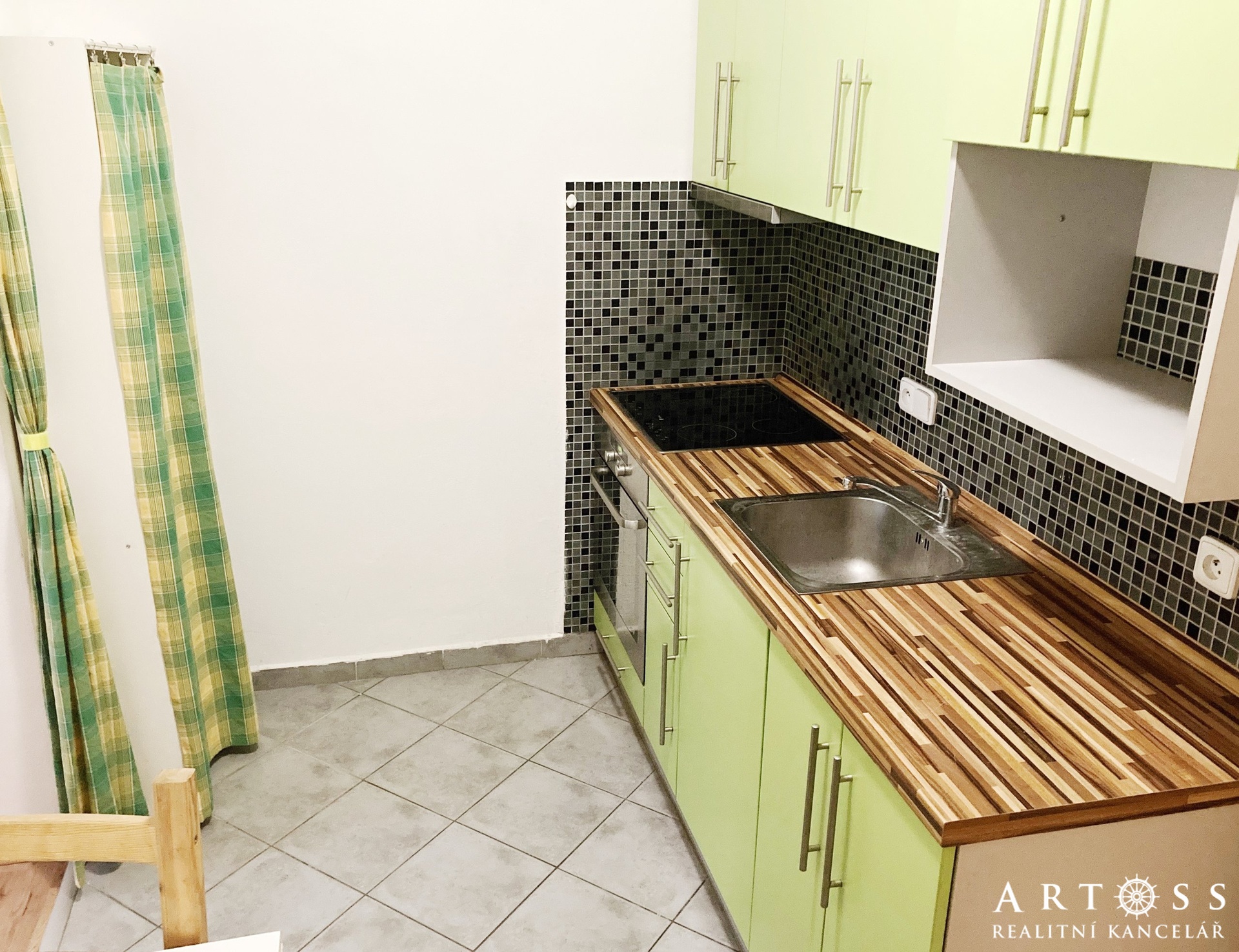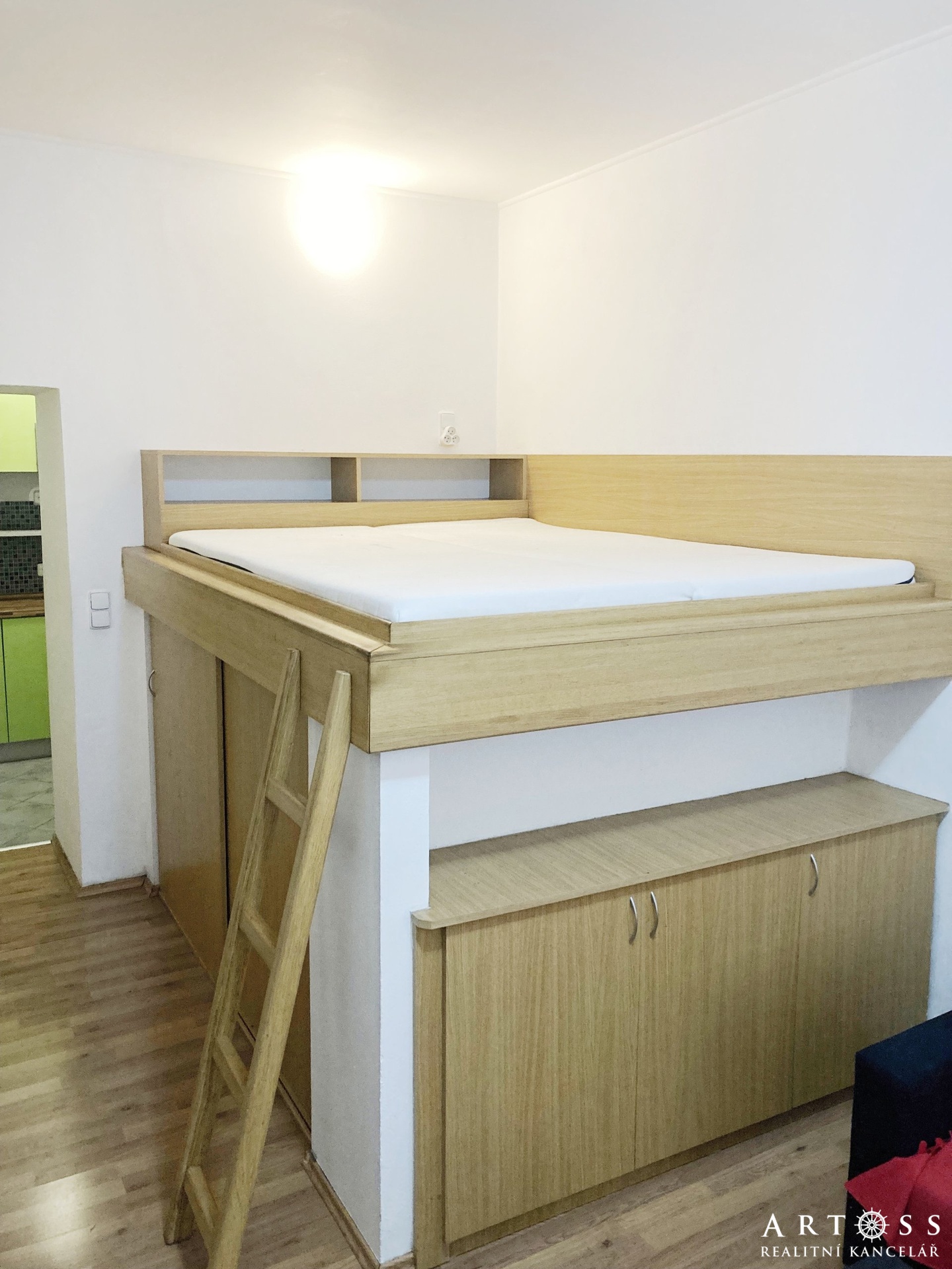 (M1) V zastoupení majitele nabízíme pěkného bytu 1+kk v Husovicích na ul. Mostecká. Byt se nachází na 1. nadzemním podlaží cihlového rekonstruovaného domu s výtahem. Pěkné a klidné bydlení v moderním bytě. Kuchyně je oddělena od obývací části a je vybavena KL, troubou, digestoří a lednicí, stolem a židlemi. Obývací pokoj je vybavený postelí s úložnými prostorami, nábytkovou stěnou. V oknech jsou žaluzie. Koupelna se sprchovým koutem a WC. Pračka je k dispozici v prádelně