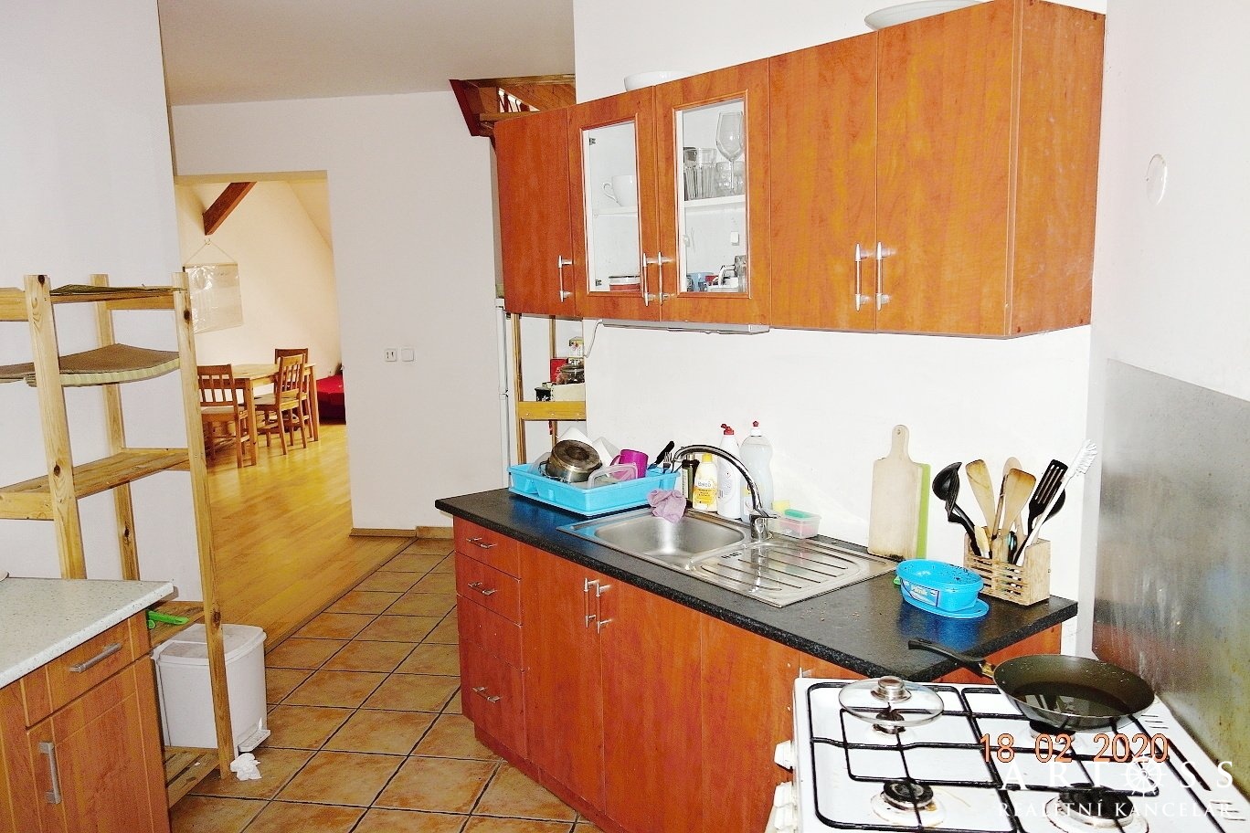 Jedná se o mezonetový byt, kde jsou čtyři samostatné pokoje se společnou kuchyni, 1x koupelna s vanou, 1x WC 1x koupelna se sprchovým koutem a WC.