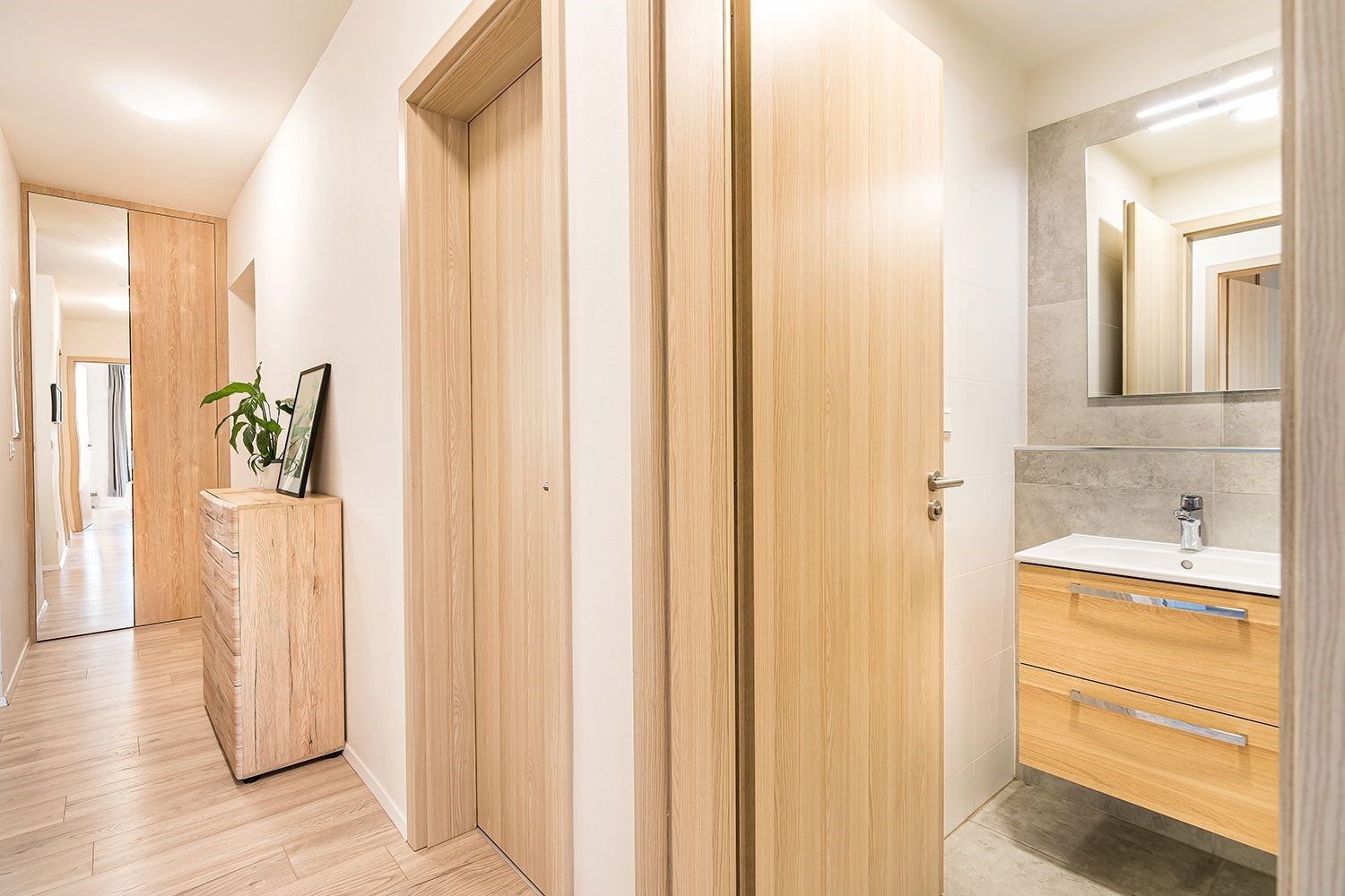 Byt je součástí moderního domu zkolaudovaného v roce 2020 a nabízí komfortní bydlení bez nutnosti dalších investic. Celková výměra bytu je 49 m², k tomu navíc terasa o velikosti 8 m² a sklepní kóje o výměře 1,2 m².