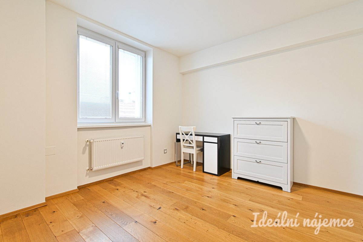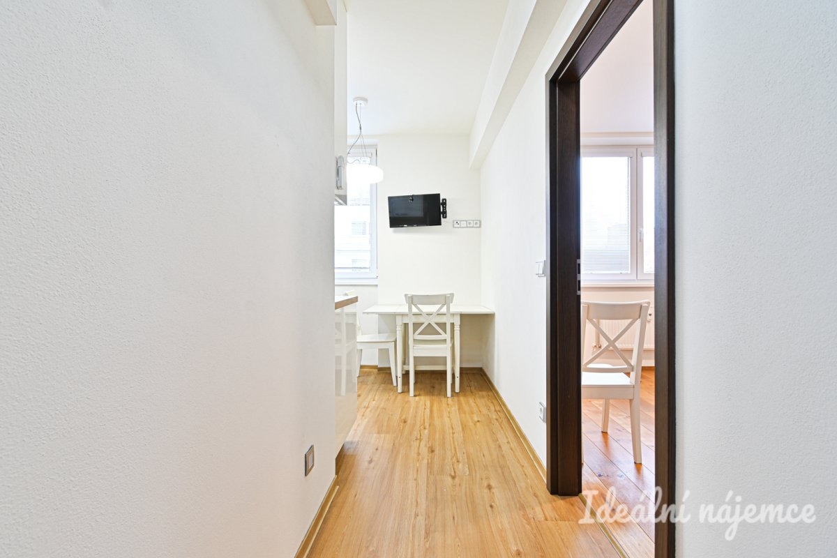Byt se nabízí částečně vybavený dle fotografií. Kuchyně je vybavená linkou, troubou, myčkou, varnou deskou a lednicí. Obývací pokoj i ložnice jsou prostorné a světlé, s krásnou udržovanou dřevěnou podlahou. V koupelně najdeme sprchový kout, umyvadlo a pračku, toaleta je samostatná. Velká vestavěná skříň je v předsíni.
