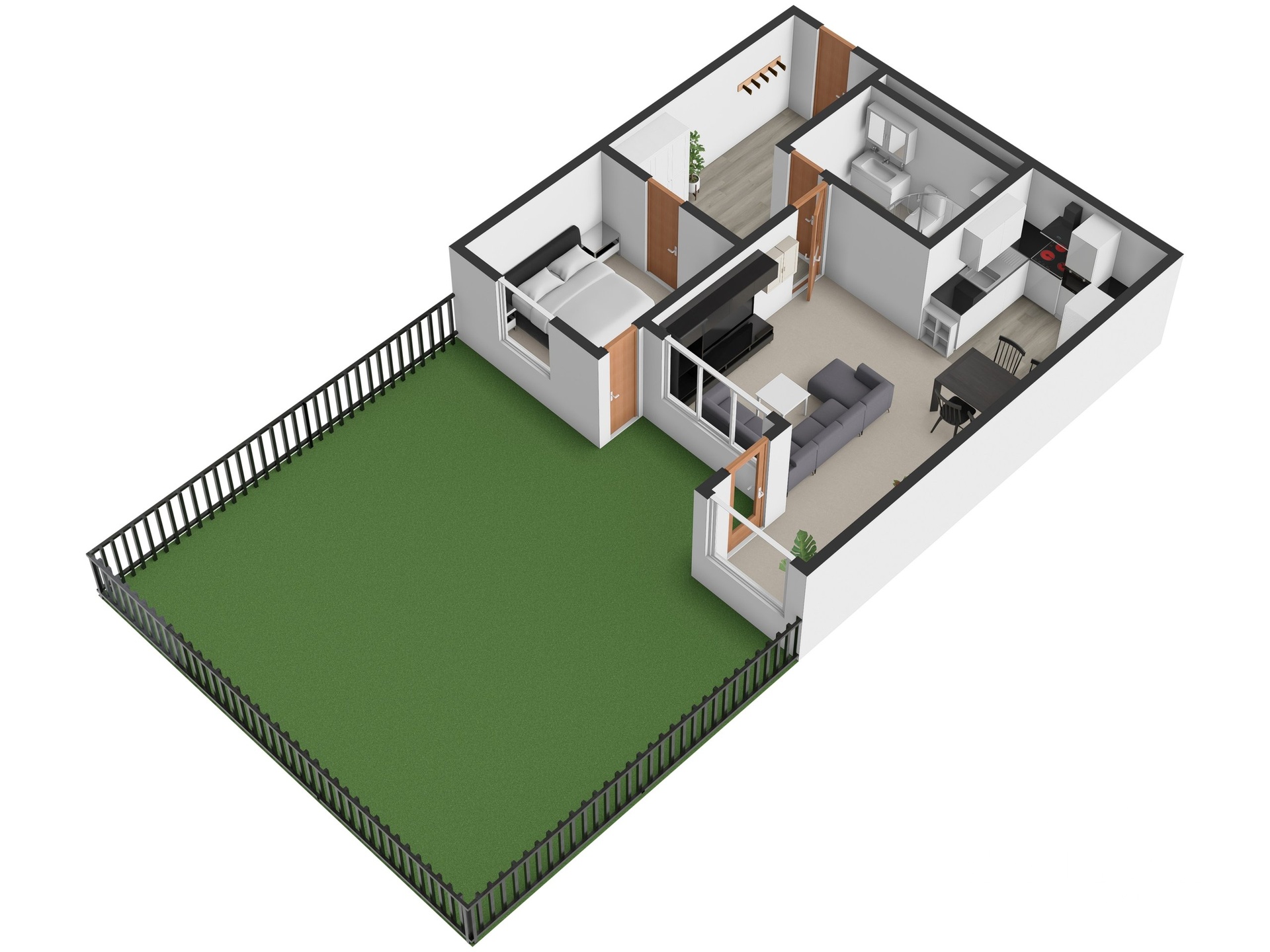 Soukromá, oplocená zahrádka lemovaná živým plotem poskytuje maximální soukromí a příjemné místo pro odpočinek. Přístup na ni je možný jak z obývacího pokoje, tak z ložnice, což výrazně zvyšuje komfort bydlení.