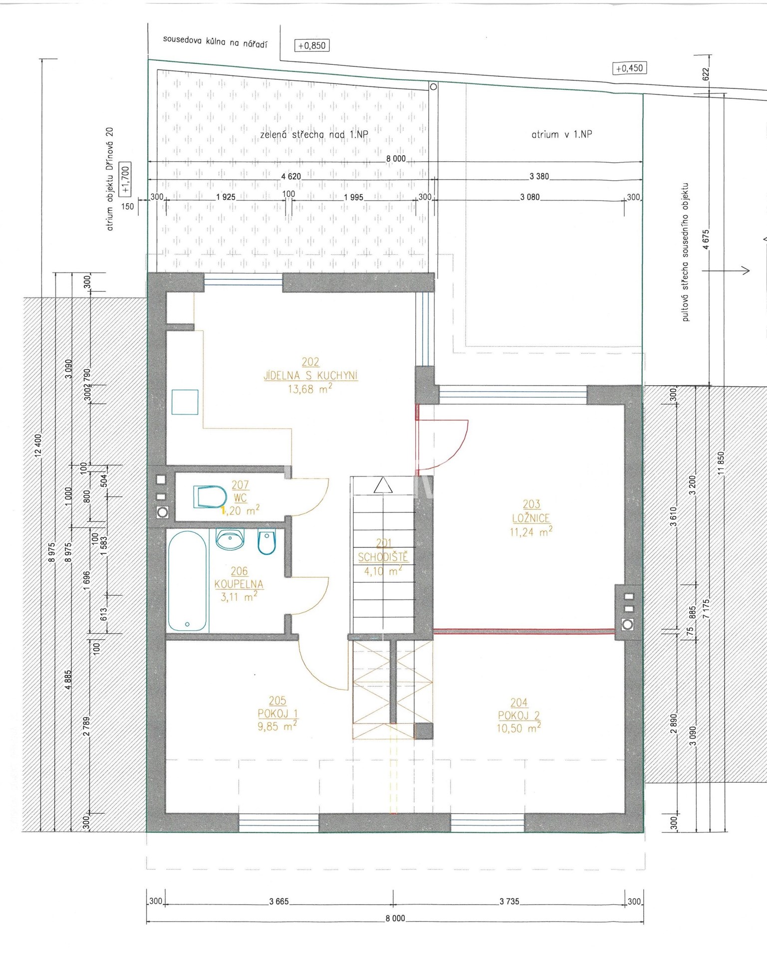 WC: 1,20 m² + 4m2 chodba