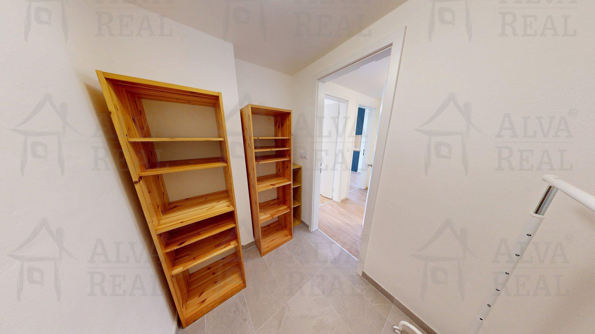 Dispozice: ložnice 18,36 m²; obývací pokoj s kuchyňskou linkou 28,87 m²; koupelna 5,6 m², WC 1,14 m², předsíň 5,81 m², komora 3,59 m².