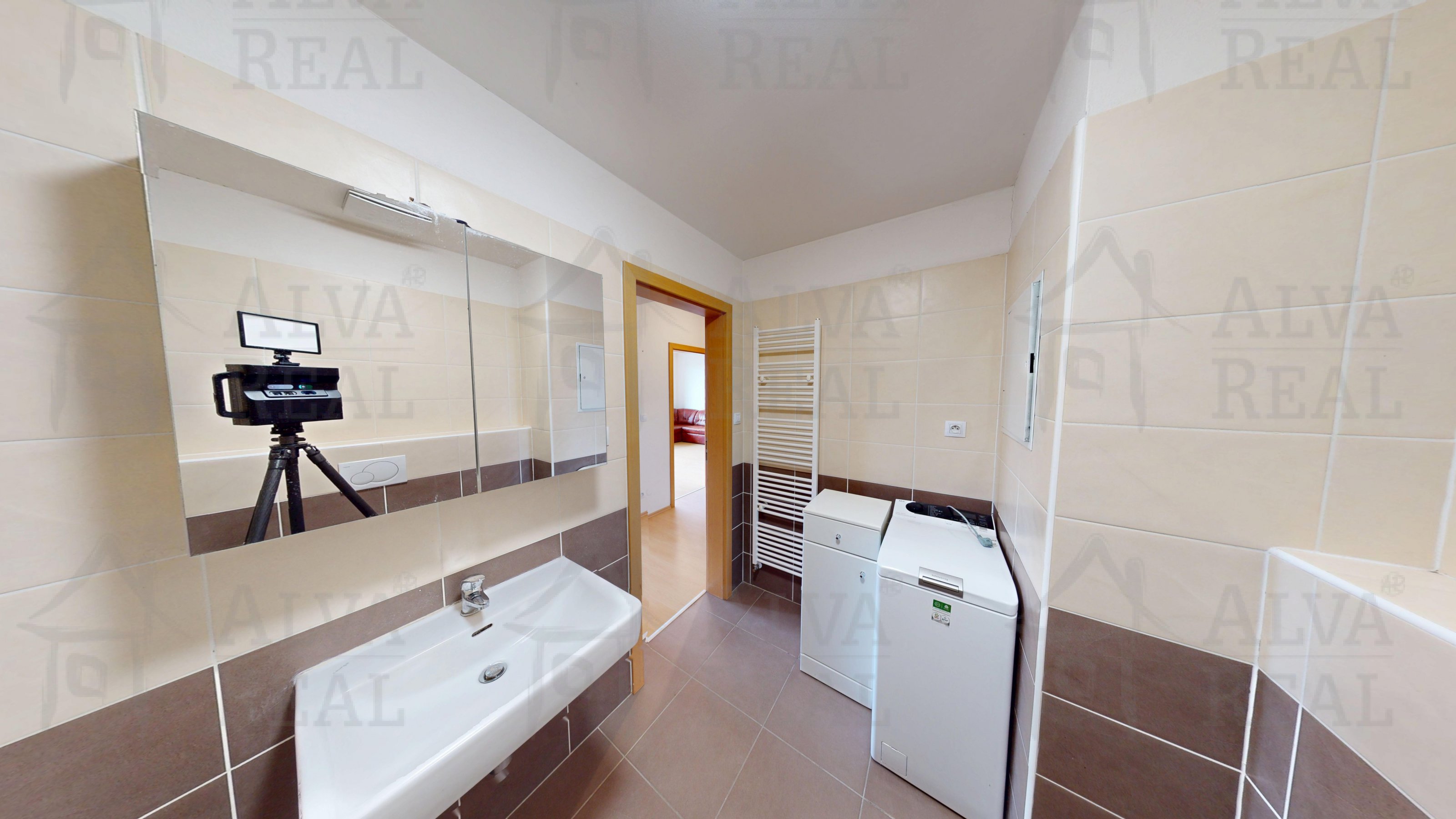 Dispozice: vstupní chodba 11,75 m², ložnice 15,99 m², obývací pokoj s kuchyňským koutem 29,24 m², koupelna 5,45 m², šatna/komora 2,35 m², sklep. Výměry jsou měřeny pomocí zařízení Matterport a jsou orientační.