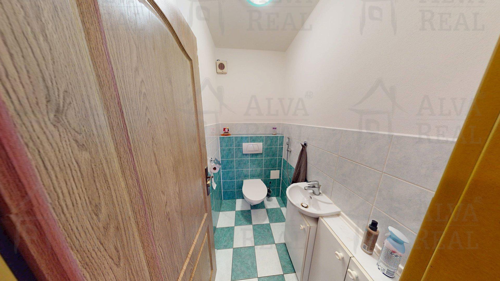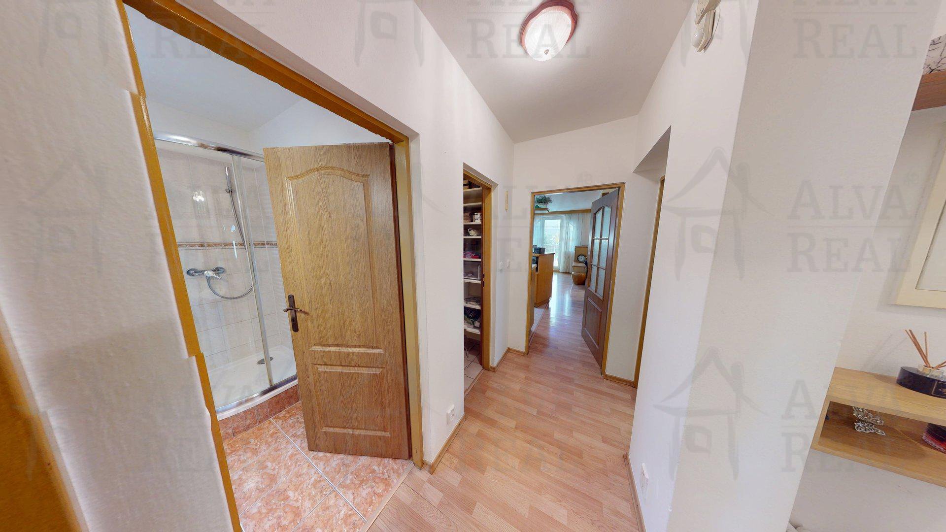 Dispozice: Obývací pokoj 14,2 m²; ložnice 9,4 m²; pokoj 10,8 m²; kuchyně 8,7 m²; koupelna 6,5 m²; WC 2 m²; chodba 3,2 m²; předsíň 3,2 m²; spíž 2,7 m²; terasa 12 m².