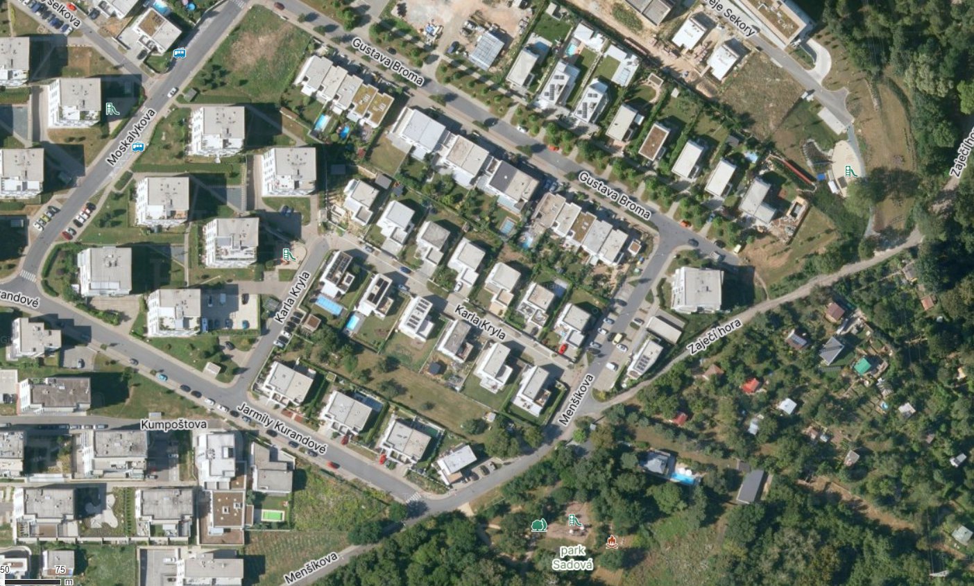Pozemek je bez el. přípojky a vody, pouze k parkování.