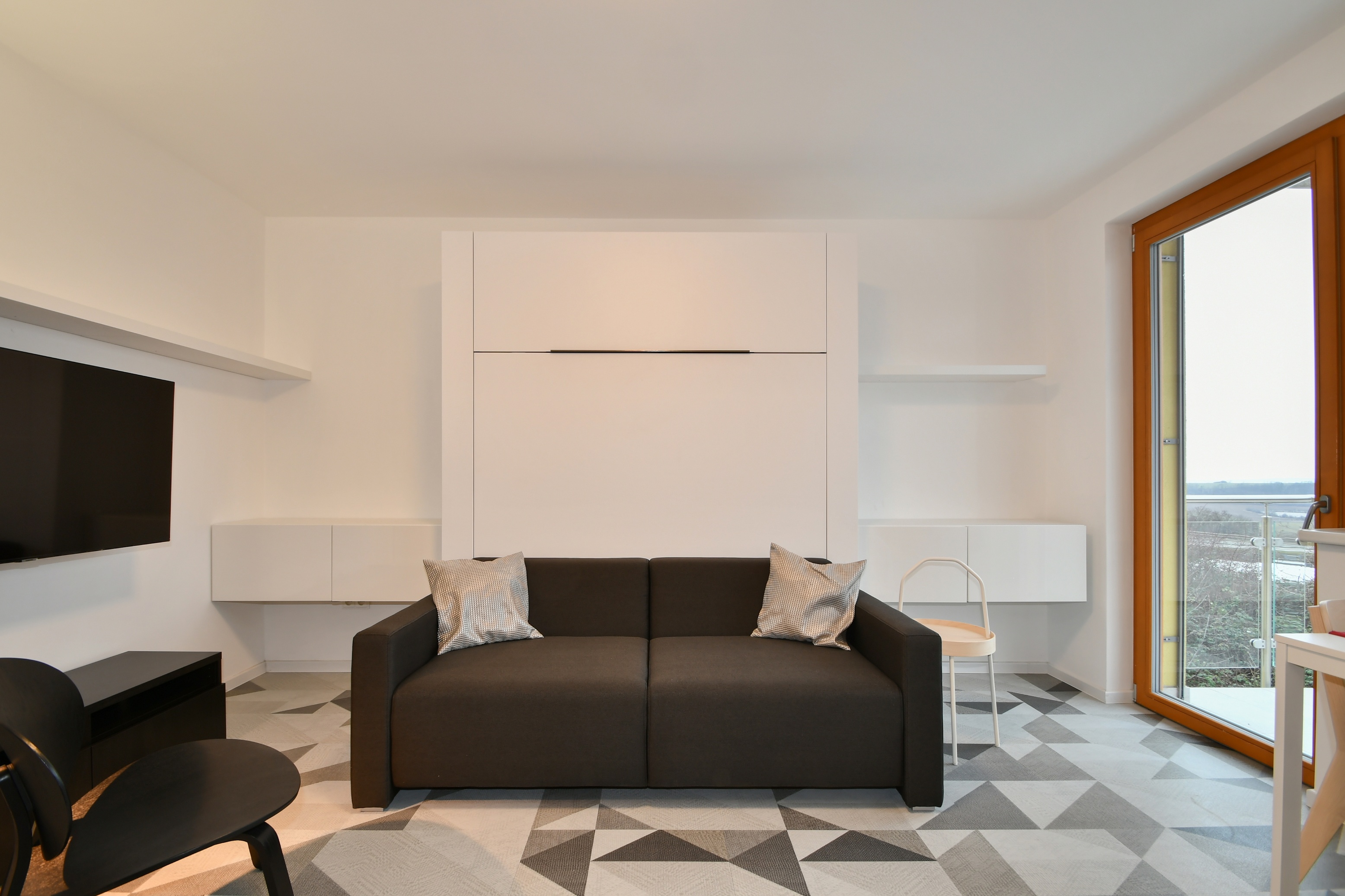 Moderní byt s balkonem a výhledem na město, vybavený chytrou domácností a klimatizací, ideální pro singles, mladé páry nebo investory.