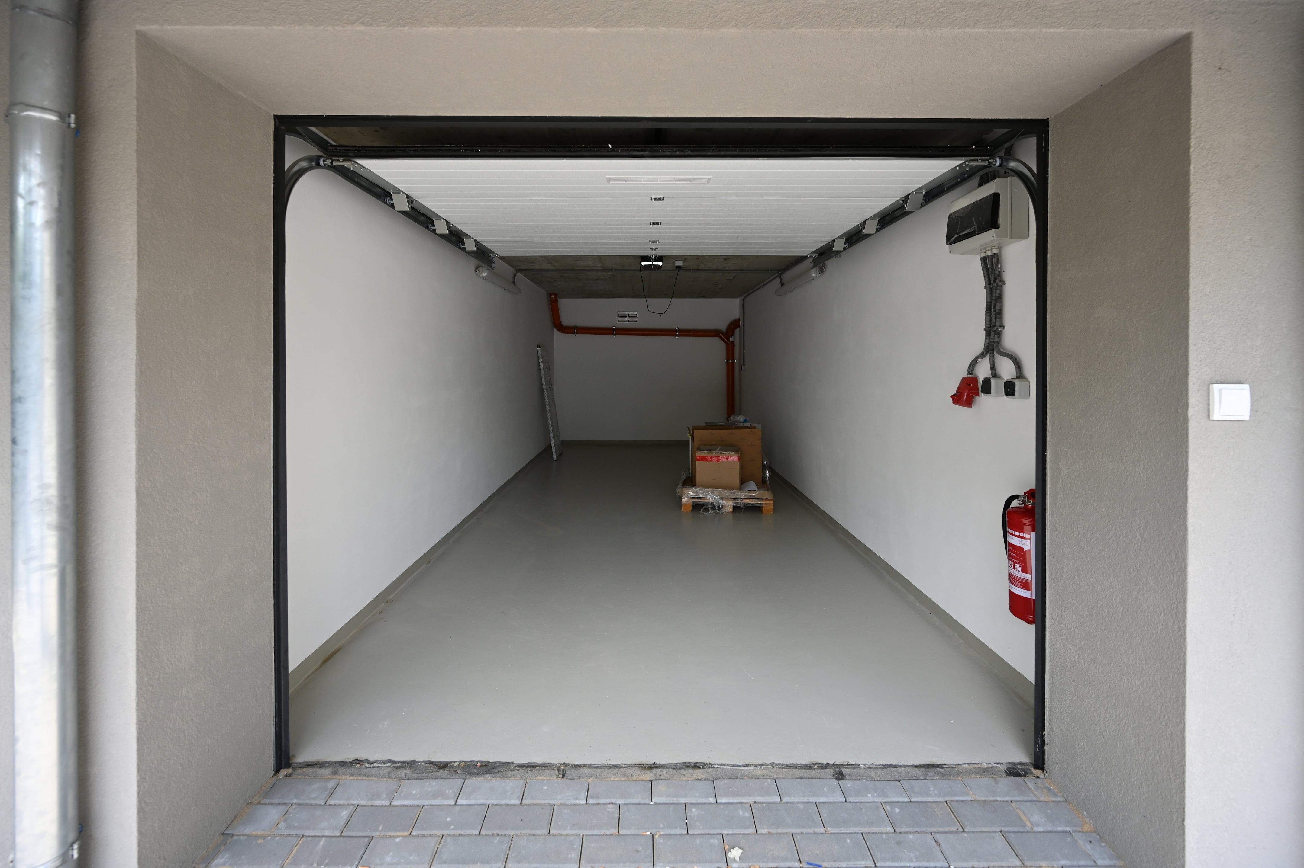 K bytu náleží sklepní kóje 2,3 m2 umístěná v suterénu domu. Součástí nabídky je možnost koupě vlastní garáže s dálkově ovládanými sekčními vraty a vjezdem z dvorní části objektu. K dispozici jsou garáže o ploše od 19,5 m2, s cenou od 1 171 800 Kč.