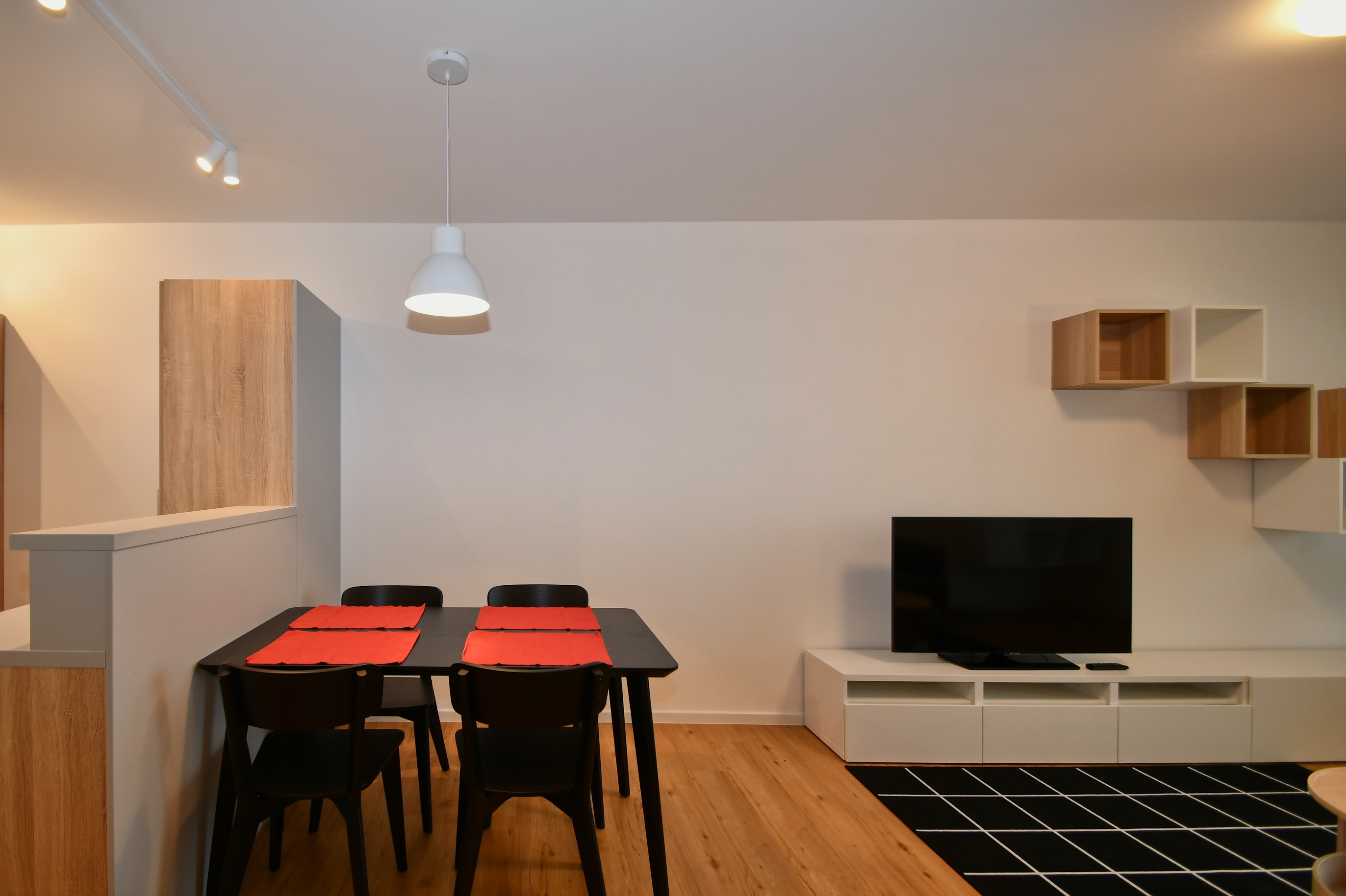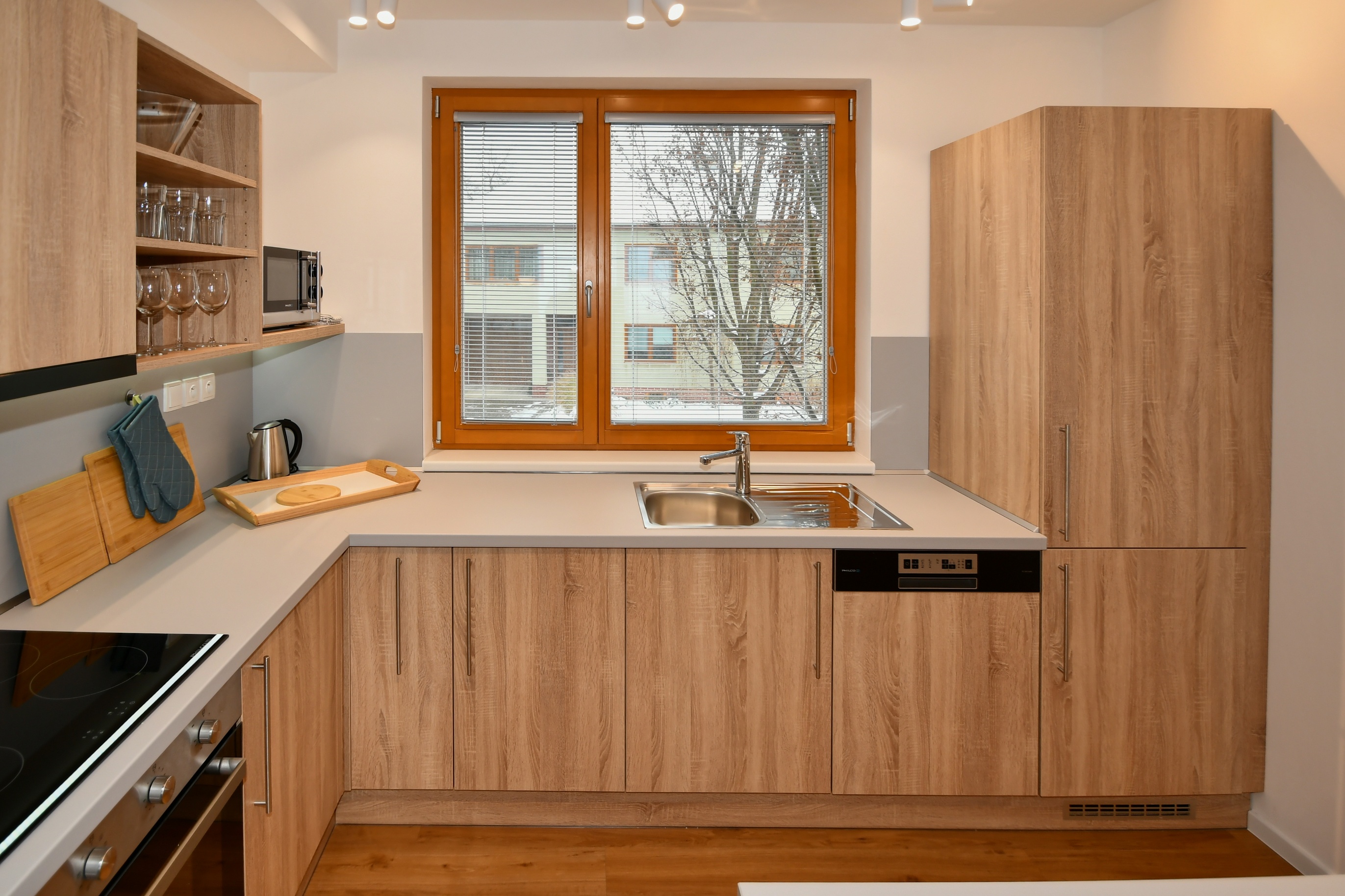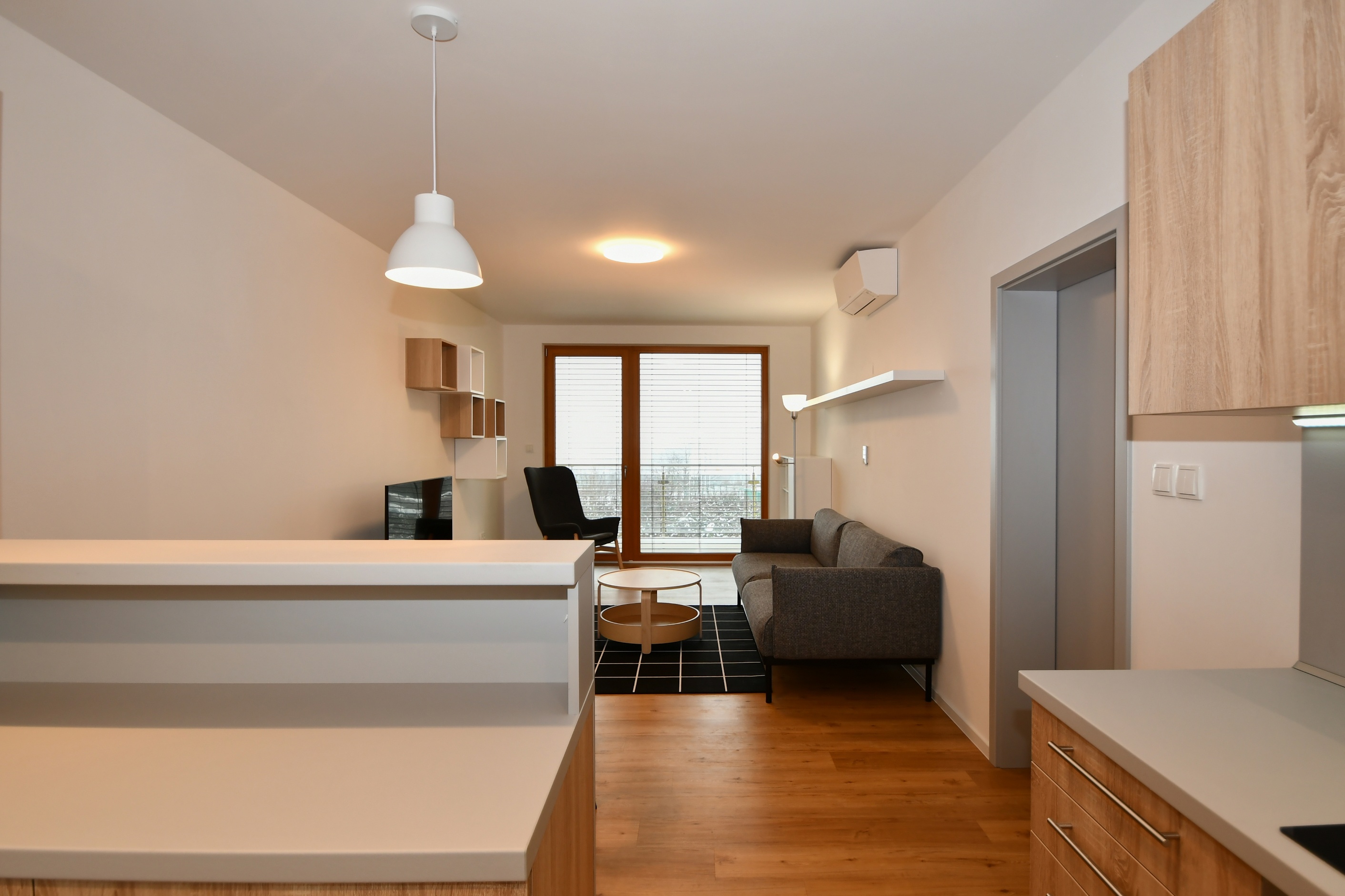 Vybavení: kuchyňská linka se spotřebiči, AC Daikin, podlahové topení Baxi, Smart Home Siemens, žaluzie VEKRA