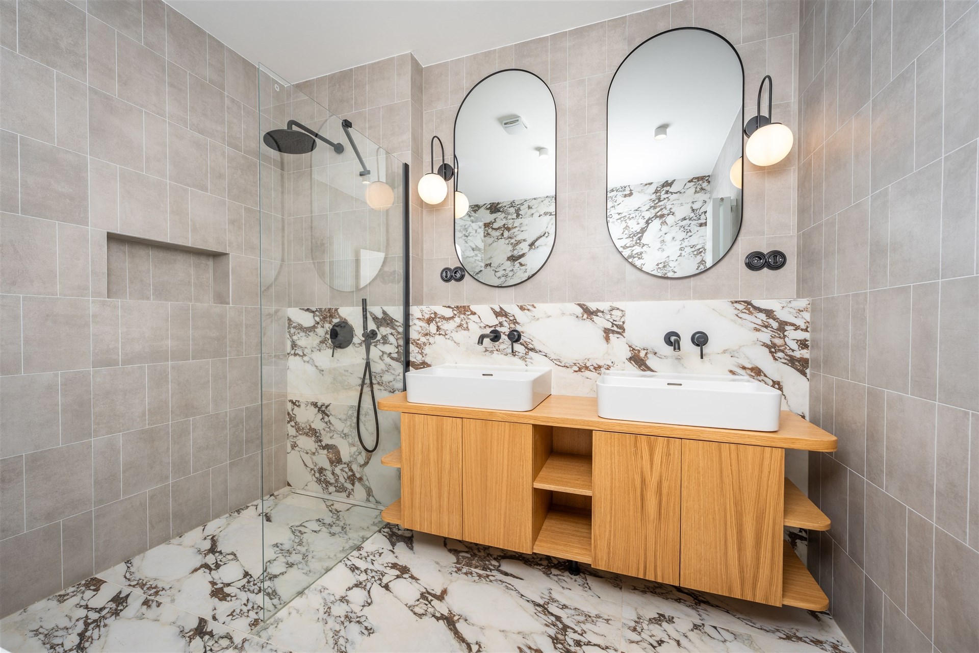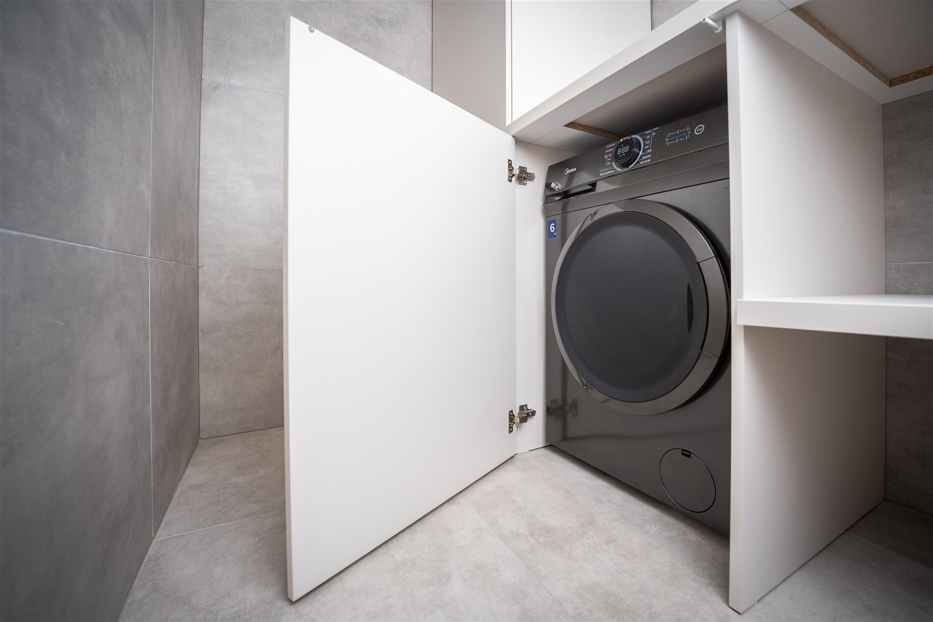 Stylová koupelna je vybavena sprchovým koutem i vanou, samozřejmostí je samostatná toaleta a technická místnost s pračkou a sušičkou. K dokonalému komfortu přispívá klimatizace a vysokorychlostní internet.