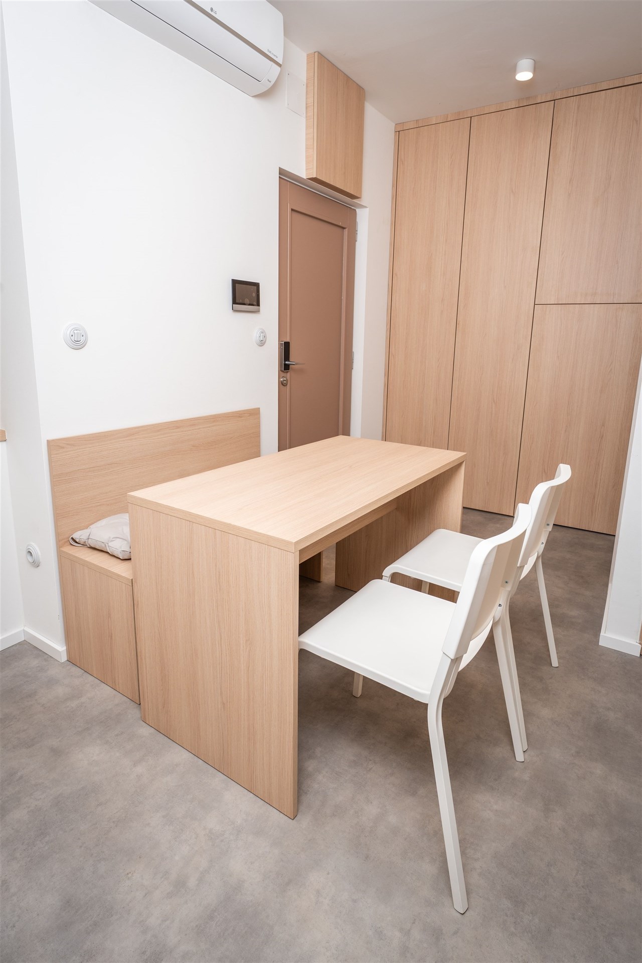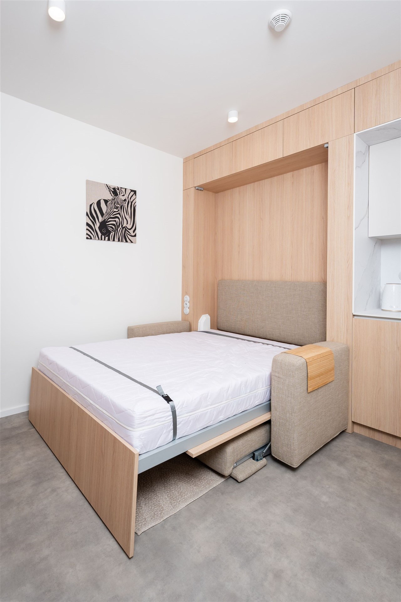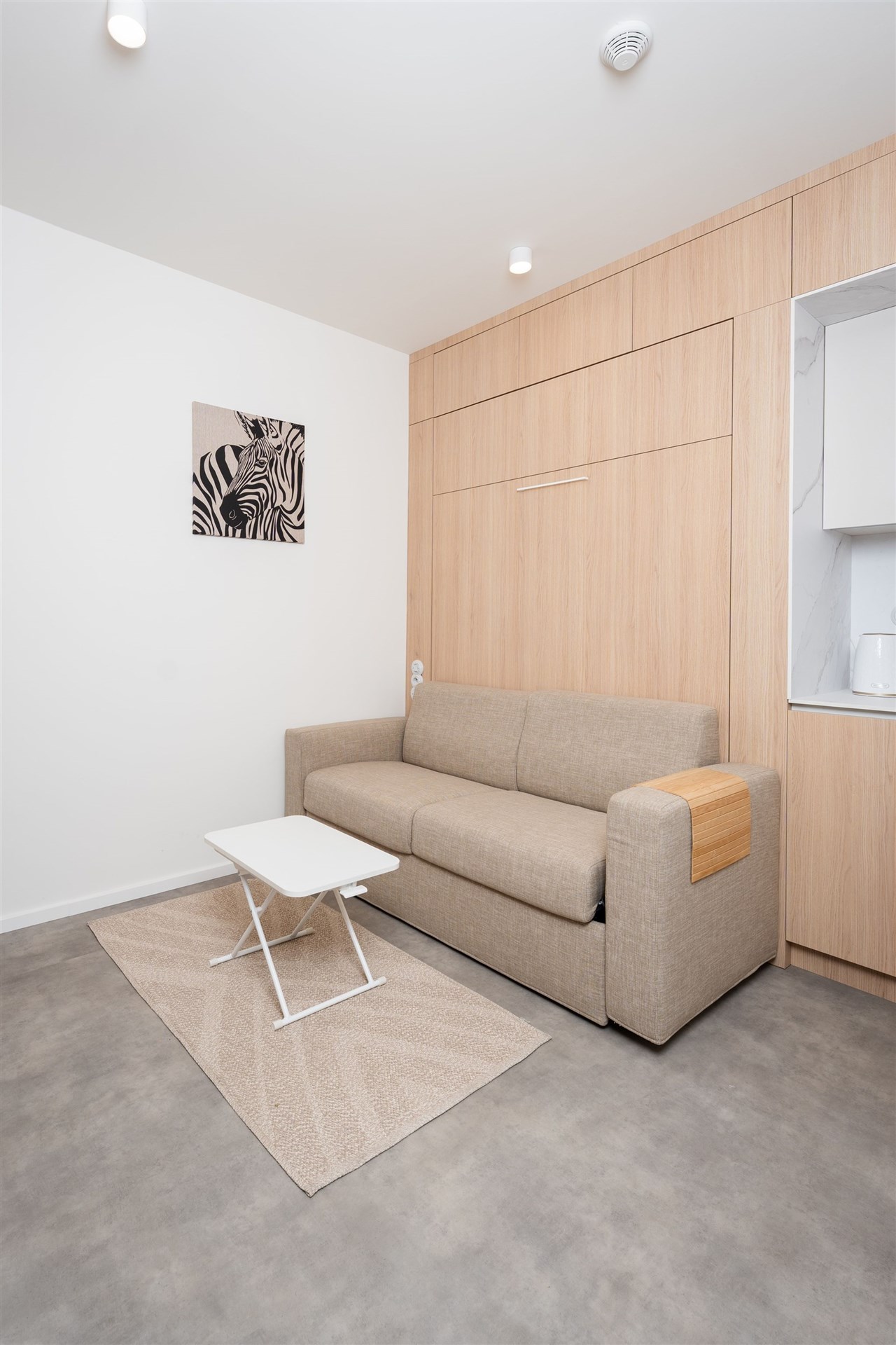 Apartmán je plně vybaven tak, aby ubytovaným poskytl maximální komfort během jejich pobytu. Kuchyňský kout je kompletně zařízen moderními spotřebiči, včetně varné desky, digestoře, kombinované elektrické a mikrovlnné trouby, rychlovarné konvice a lednice s mrazákem. Dominantou obývací části je designový rozkládací gauč, který lze snadno přeměnit v pohodlné dvoulůžko. K dispozici je také moderní televize s možností sledování všech oblíbených programů a vestavěné skříně z kvalitních materiálů, které zajišťují dostatek úložného prostoru. Elegantní koupelna je vybavena sprchovým koutem, toaletou a praktickým úložným prostorem. Součástí apartmánu je také pračka, nenápadně integrovaná do interiéru, klimatizace zajišťující příjemné klima v každém ročním období a vysokorychlostní internetové připojení.