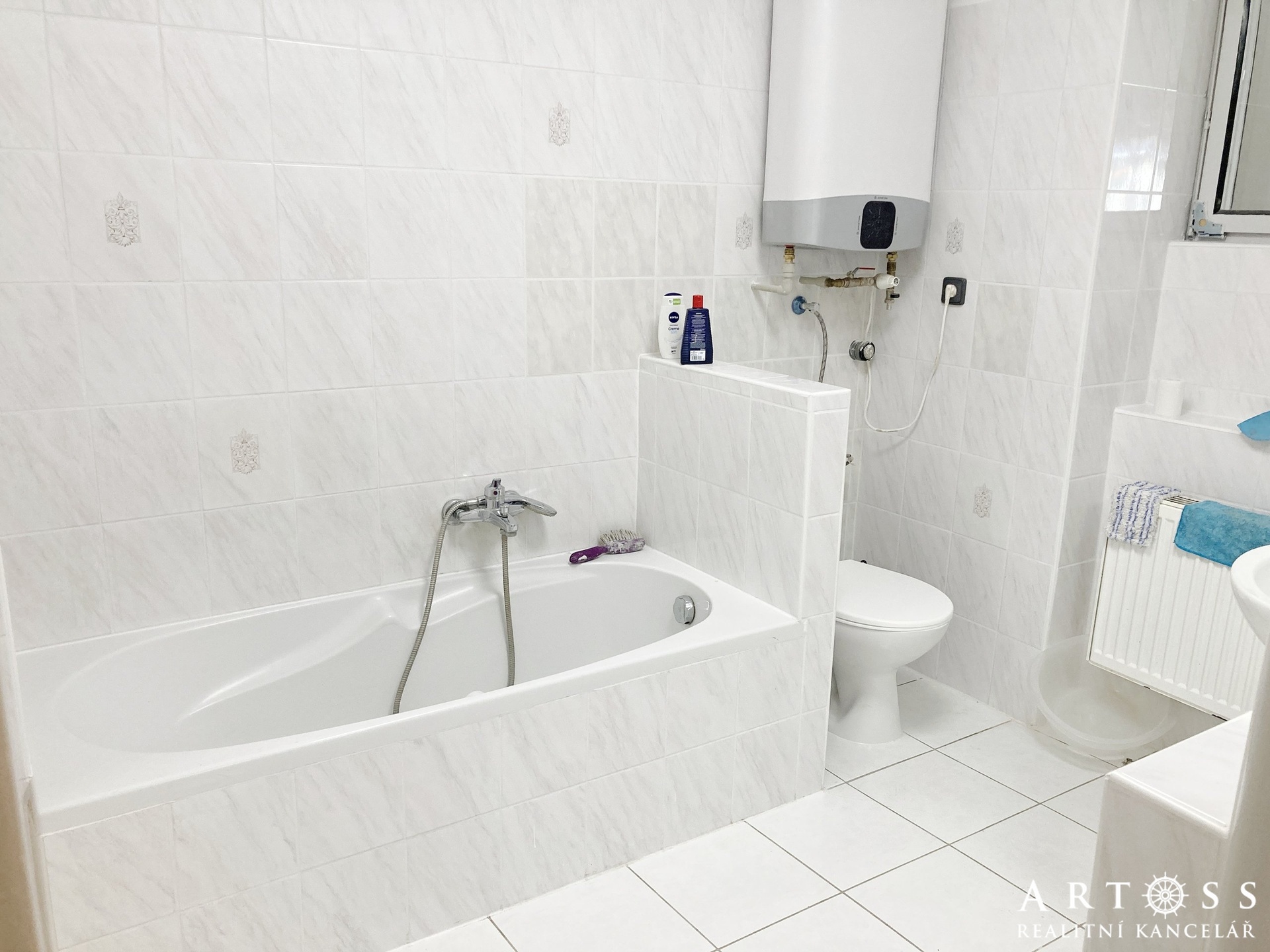 Sdílené prostory: K dispozici je moderní kuchyně s vestavnými spotřebiči (trouba, mikrovlnka, myčka), koupelna s vanou a pračkou.
