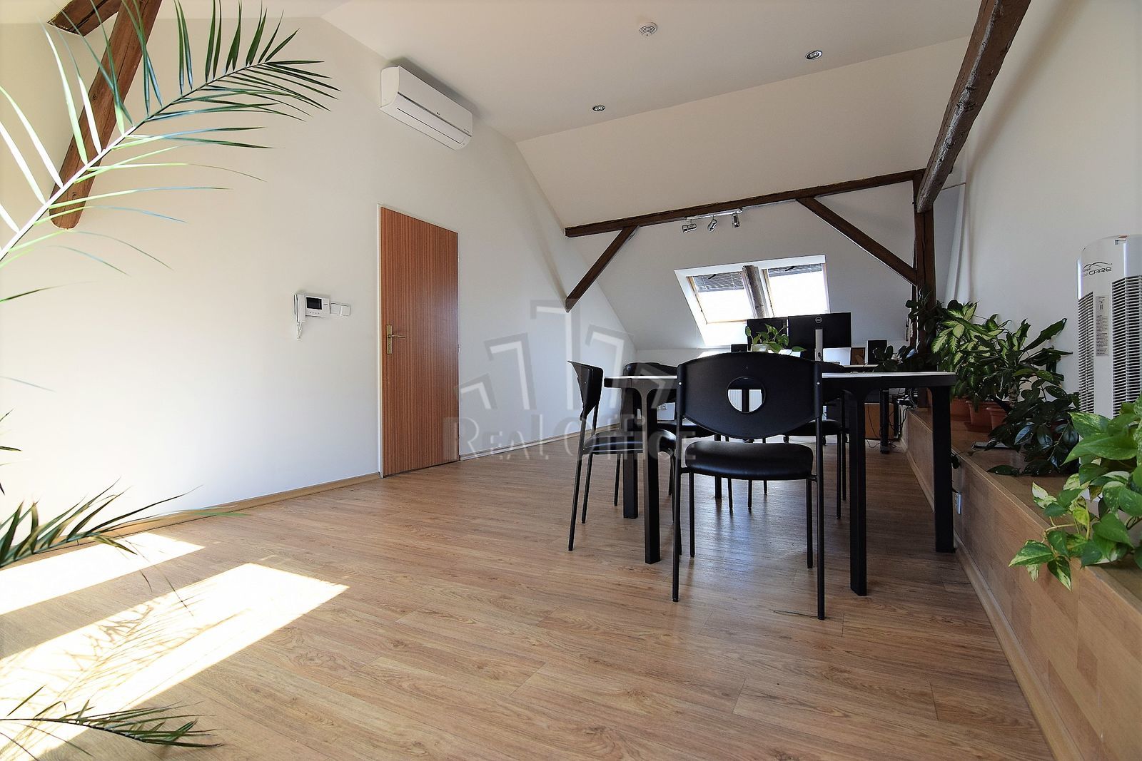 Reprezentativní prostory se nachází ve 2. patře/2. (podkroví) cihlového zrekonstruovaného domu, který je celý využíván ke komerčním účelům. Společné prostory - chodba 12 m2, soc. zařízení 5 m2 (místnost s umyvadlem+sprchovým koutem a místnost s umyvadlem+WC). Prostory jsou orientovány do ulice i do dvora (v půdorysu č.201, 202, 203 a 204 - v této místnosti nyní také umyvadlo). V prostoru chodby je k dispozici kuchyňka s lednicí. Internet v ceně, wi-fi. Možnost parkování před domem. Dům střežen kamerovým systémem, otevírání vstupních dveří s kamerou. Prostory lze užívat pro klasickou kancelářskou/obchodní činnost, popř. i pro masáže, fyzioterapii a obdobné činnosti.
