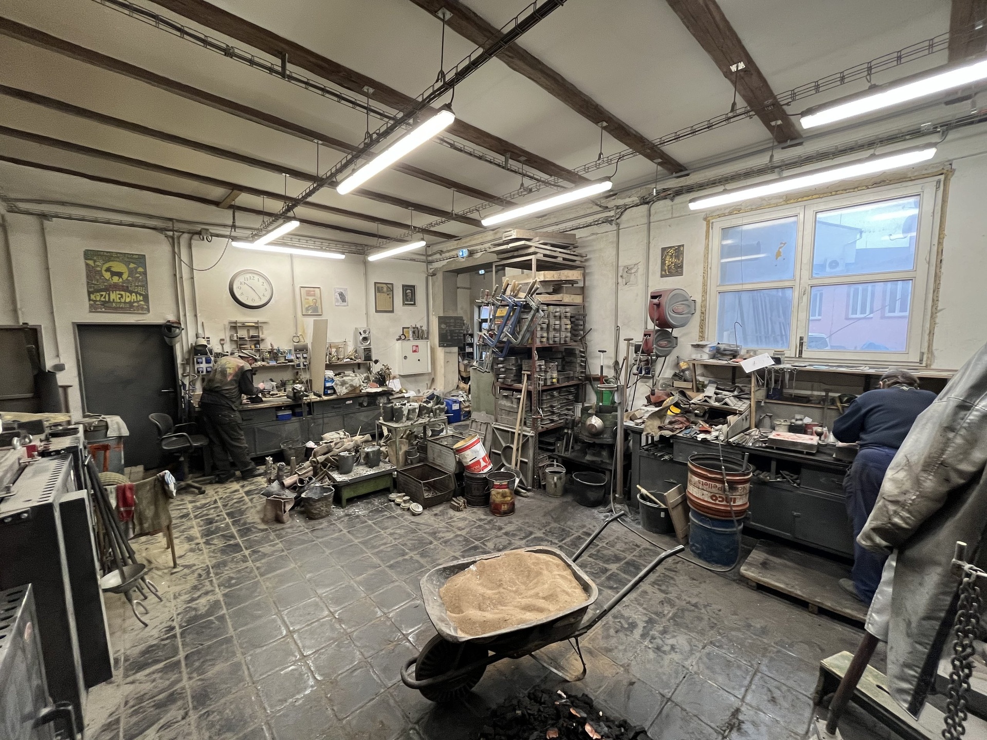 Dispozice nabízí skladové prostory vč. tří velkých garáží (121,29 m²), dílny (96,3 m²), kanceláře (80,71 m²), další plochy (41,15 m²), kompletní zázemí o výměře (24,49 m²) vč. kuchyňky, koupelny s toaletou a dalších čtyř samostatných WC.