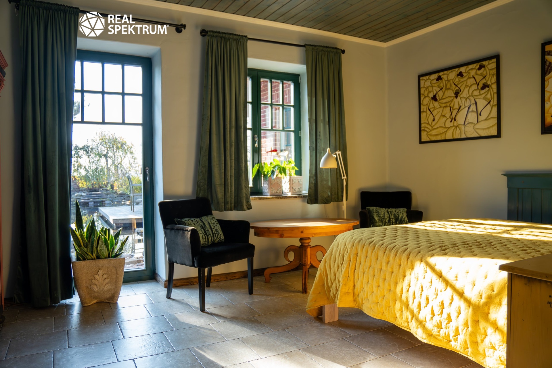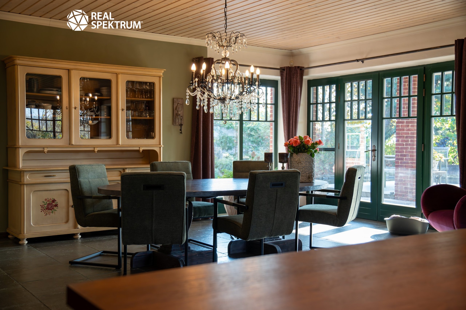 Celý dům je řešen ve vysokém standartu a při jeho budování bylo myšleno na každý detail. Izolace domu je řešena holandským osvědčeným systémem 40 cm Porotherm, 5 cm vzduchová mezera a 10 cm cihelná přizdívka, což společně s vápennými omítkami a vápennými barvami zaručuje perfektní klima v průběhu celého roku. Samotné topení je řešeno pomocí tepelného čerpadla Stiebel vzduch-voda a rozváděno podlahovým topením v celém domě. Pro případ výpadku el. energie je připravena k napojení na stávající rozvaděč benzinová elektrocentrála. Stejně tak jsou nabité baterie z fotovoltaiky připravené v tomto případě dál dodávat el. energii do zásadních částí domu. Fotovoltaika umístěná na střeše o výkonu 6,3kW byla instalovaná v roce 2022, s bateriemi na uložení energie o výkonu 12 kWh a dokonce i nabíječkou na elektroauto. Důraz na ekologii byl kladen i při čerpání vody. Voda je řešena vlastním vrtem v hloubce 78 m a naprosto dostatečným výkonem (2l/s). Samozřejmostí je automatická závlaha.