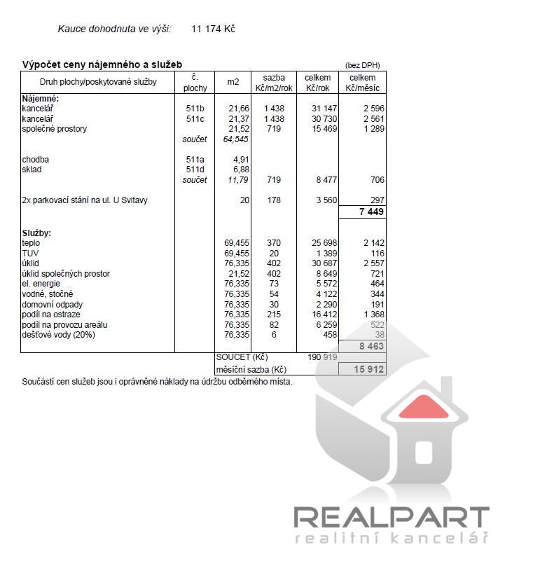 + záloha na služby 8.463 Kč , uvedené ceny jsou bez DPH