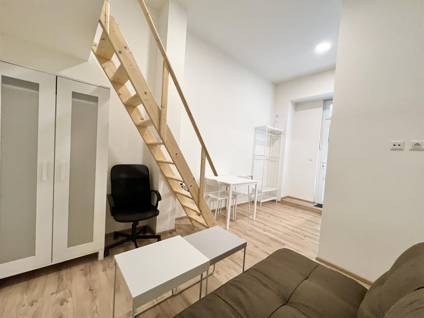 Jedná se o podnájem kompletně vybavené jednotky o dispozici 1+kk v nově zrekonstruovaném domě. Součástí je plně zařízený kuchyňský kout včetně lednice, sklokeramické desky, mikrovlnné trouby, varné konvice, digestoře a dřezu. Jednotka je vybavena pracovním a jídelním stolem se židlemi, pohodlným gaučem, mezonetovým spaním s nočními stolky, lampičkami a prostornou skříní. Koupelna nabízí sprchový kout, záchod a umyvadlo se zrcadlem. K dispozici je příprava pro připojení vlastní pračky.