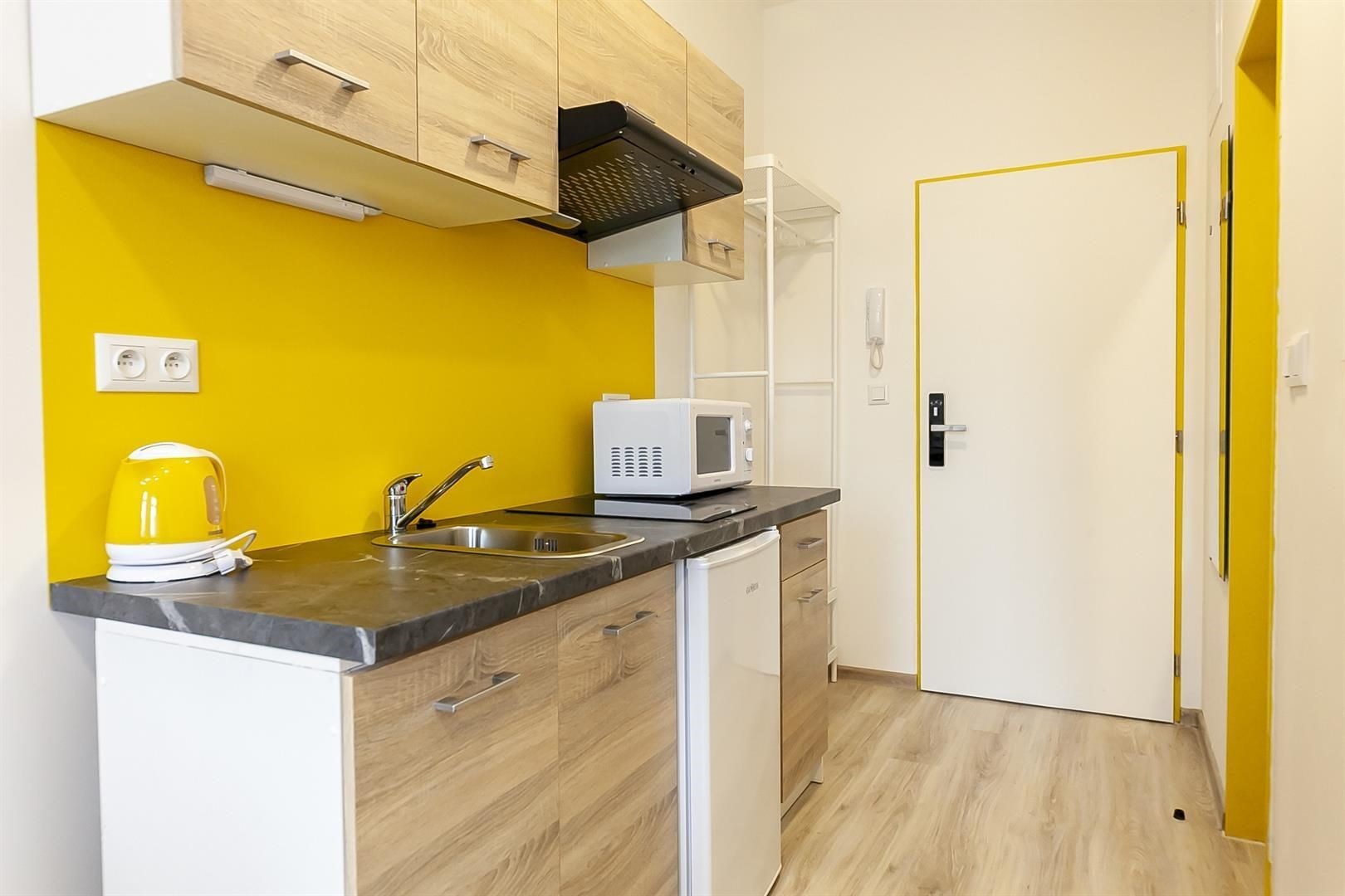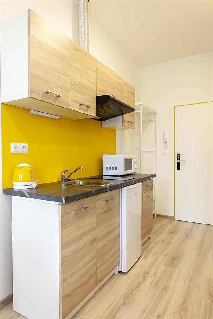 Jedná se o podnájem kompletně vybavené jednotky o dispozici 1+kk v nově zrekonstruovaném domě. Součástí vybavení kuchyně je plně zařízený kuchyňský kout, včetně lednice, sklokeramické desky, mikrovlnné trouby, varné konvice, digestoře a dřezu. Jednotka je vybavena dvěma pracovními stoly se židlemi, dvěma pohodlnými postelemi, jídelním stolem a dostatečným prostorem na ukládání oblečení jak ve vestavěné skříní tak i ve třídveřové skříni. Koupelna je také plně vybavená, a to sprchovým koutem, záchodem a umyvadlem se zrcadlem. K dispozici je příprava pro připojení vlastní pračky.