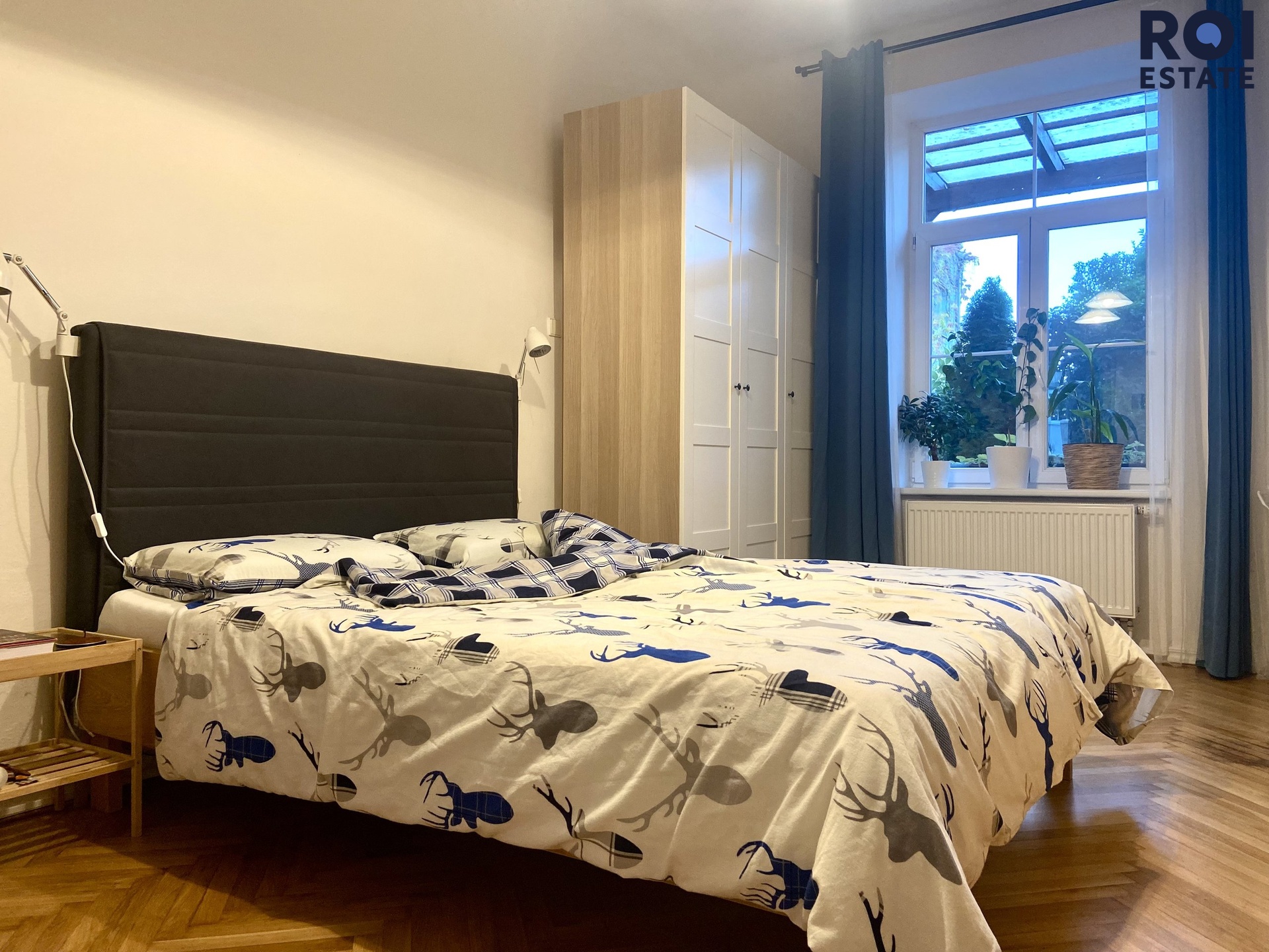 Ložnice s postelí (nemusí zůstávat), jako úložný prostor jsou zde velké skříně a noční stolky.
