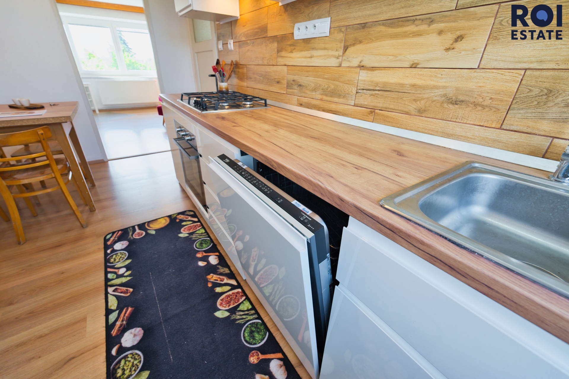V bytě najdete kuchyň plně vybavenou spotřebiči, stůl a židle, což usnadní přípravu každodenního jídla. Obývací pokoj s knihovnou a ložnice s postelí nabízejí dostatek úložného prostoru. Záchod a koupelna jsou odděleny pro maximální pohodlí.