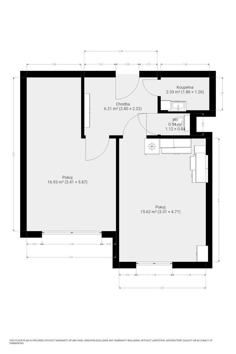 Byt se nabízí bez vybavení dle fotografií. Kuchyně disponuje lednicí, troubou, varnou deskou, digestoří a dostatkem úložných prostor. Obývací část pokoje poskytuje příjemný a světlý prostor pro každodenní využití. Ložnice nabízí dostatek místa pro postele, skříně i místo na pracovnu. V koupelně je sprchový kout, a umyvadlo se skříňkou. Toaleta je umístěna samostatně.