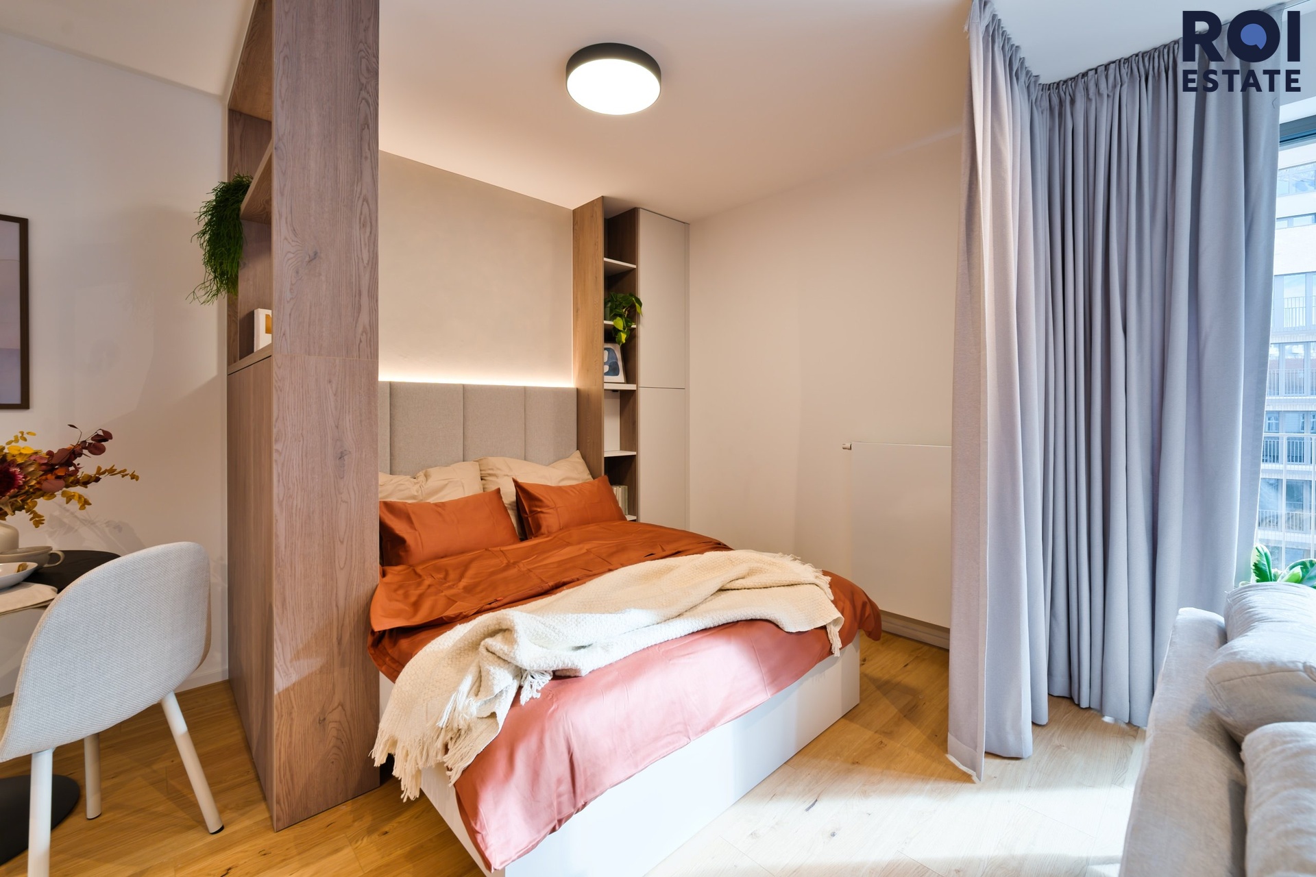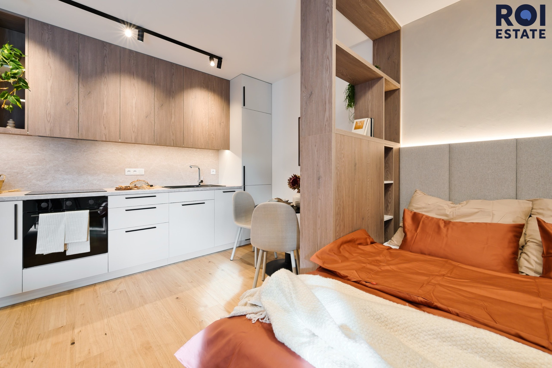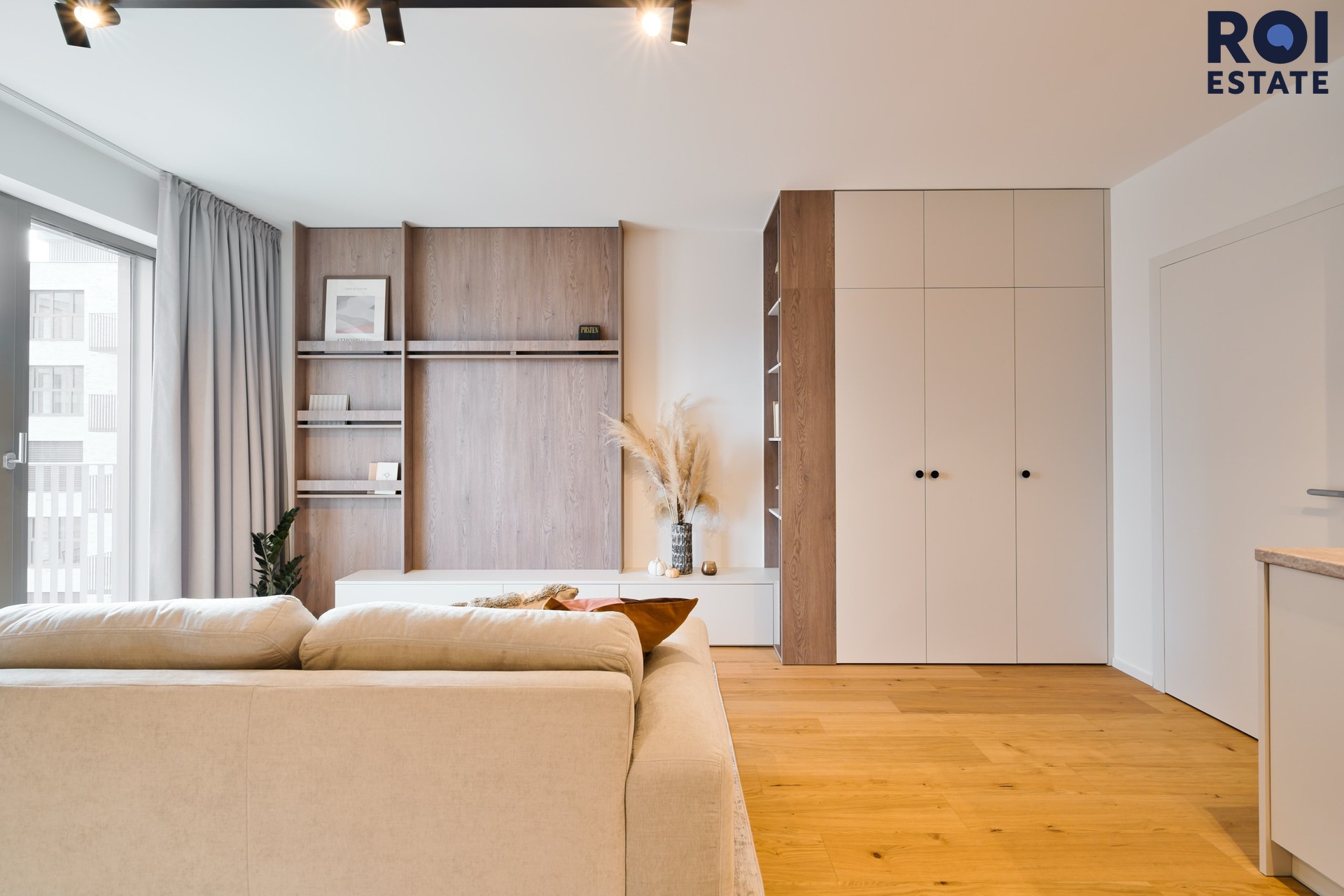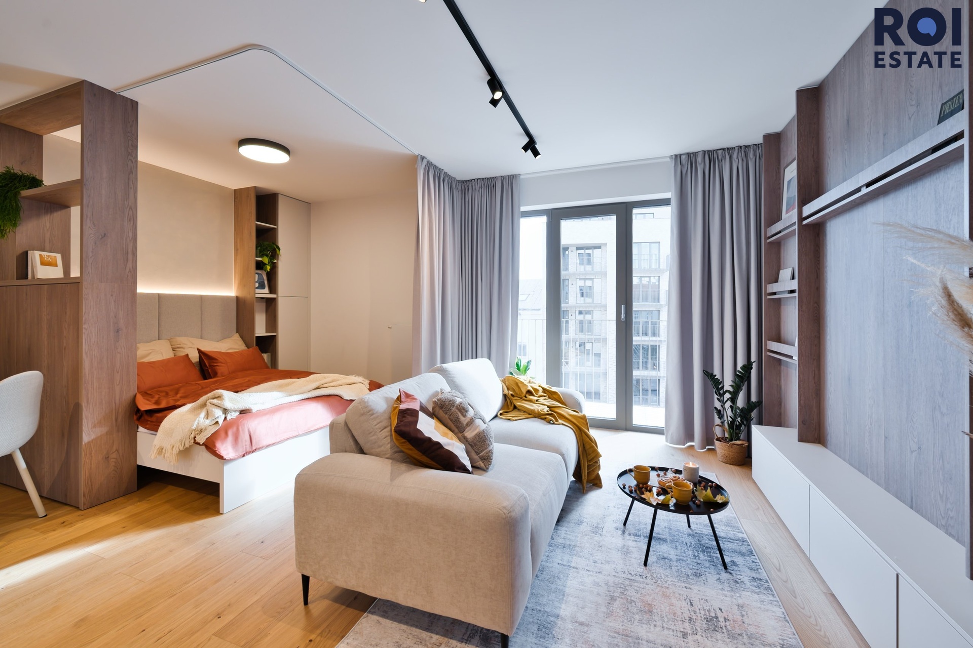Nabízíme k pronájmu luxusní, plně vybavený byt 1+kk (39 m²) ve 4. patře ikonické novostavby na adrese Bratislavská 82. Tento byt není dílem náhody – o každý detail se postarala interiérová designérka, která proměnila kompaktní prostor v oázu stylu a funkčnosti.