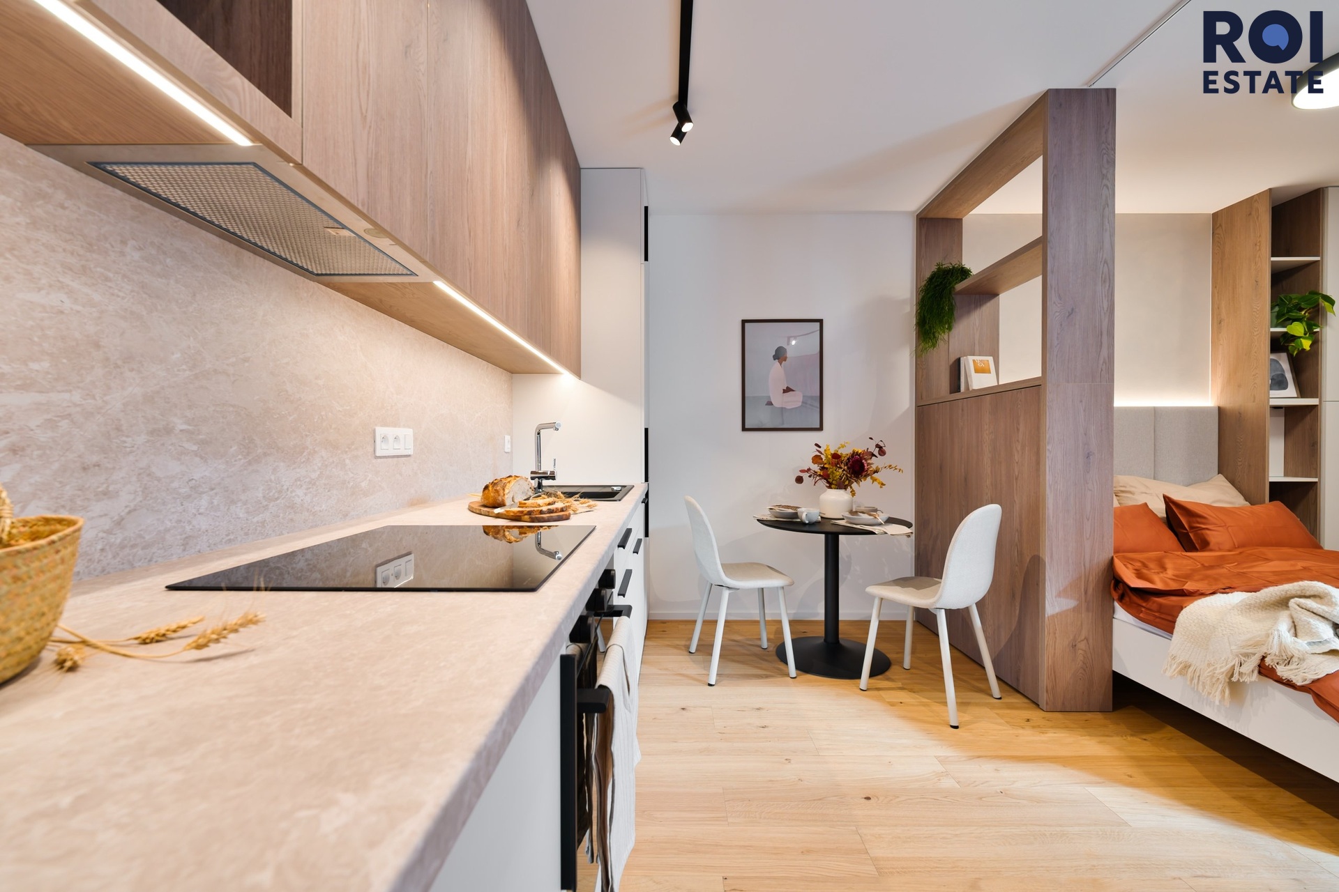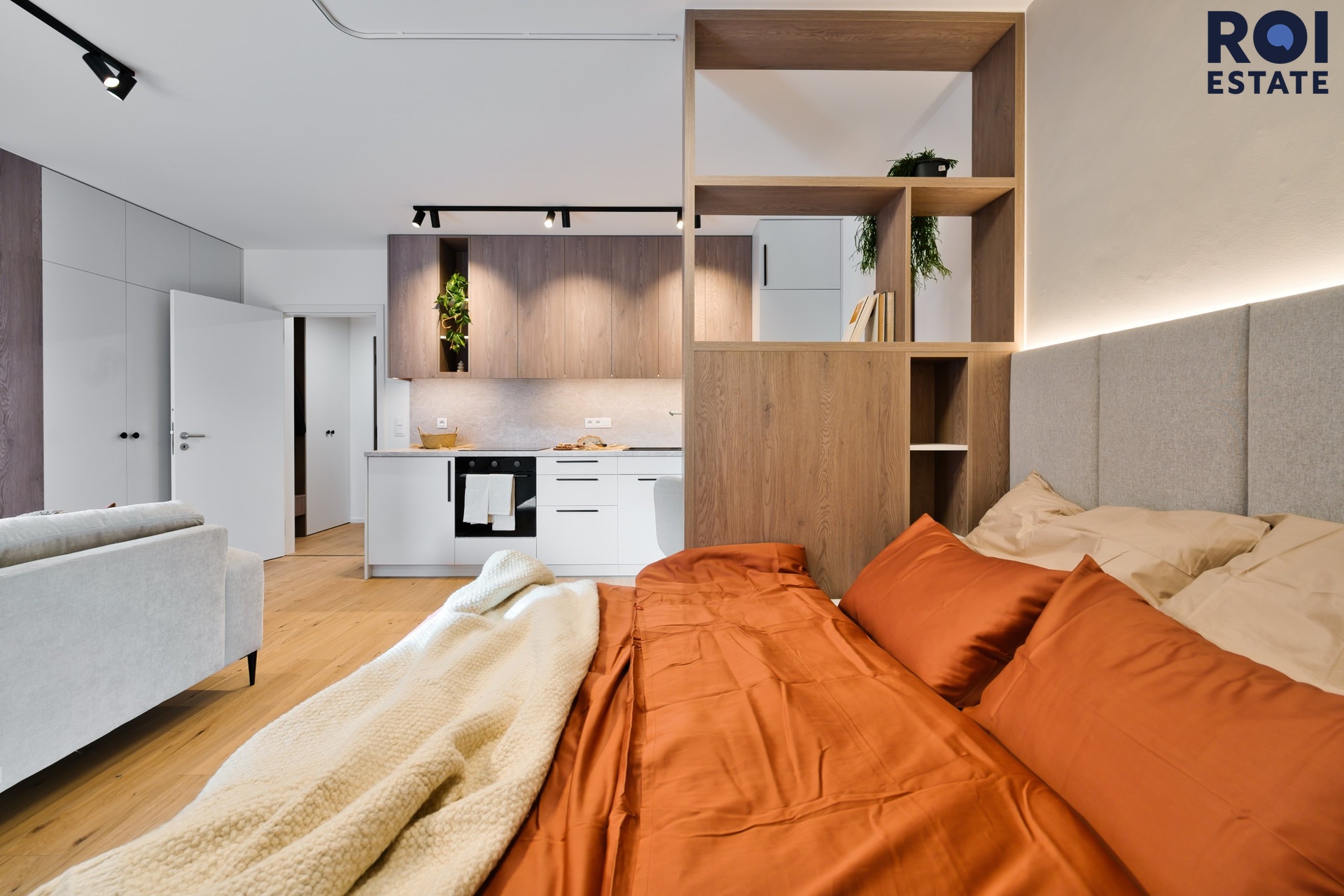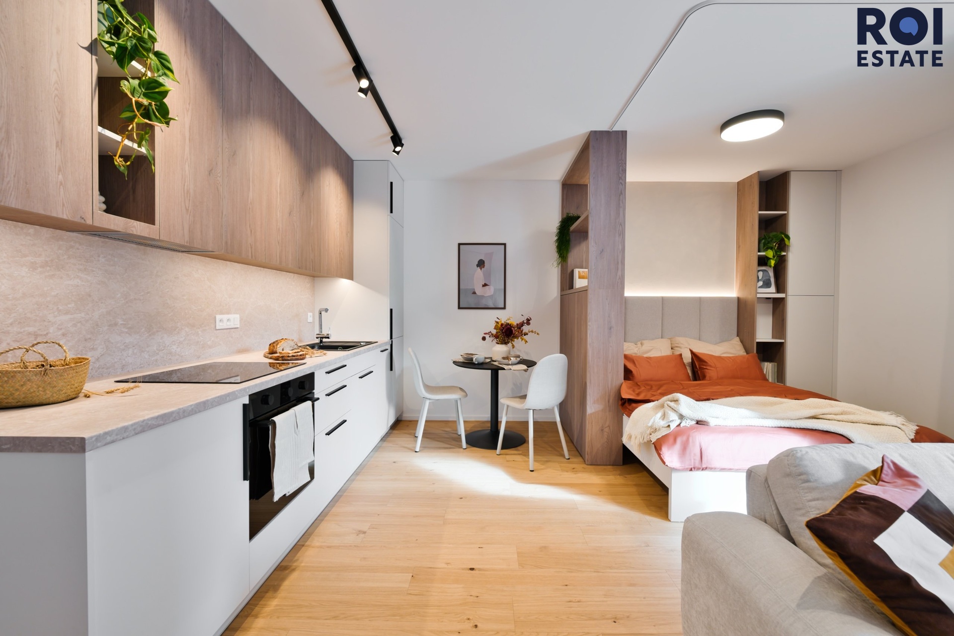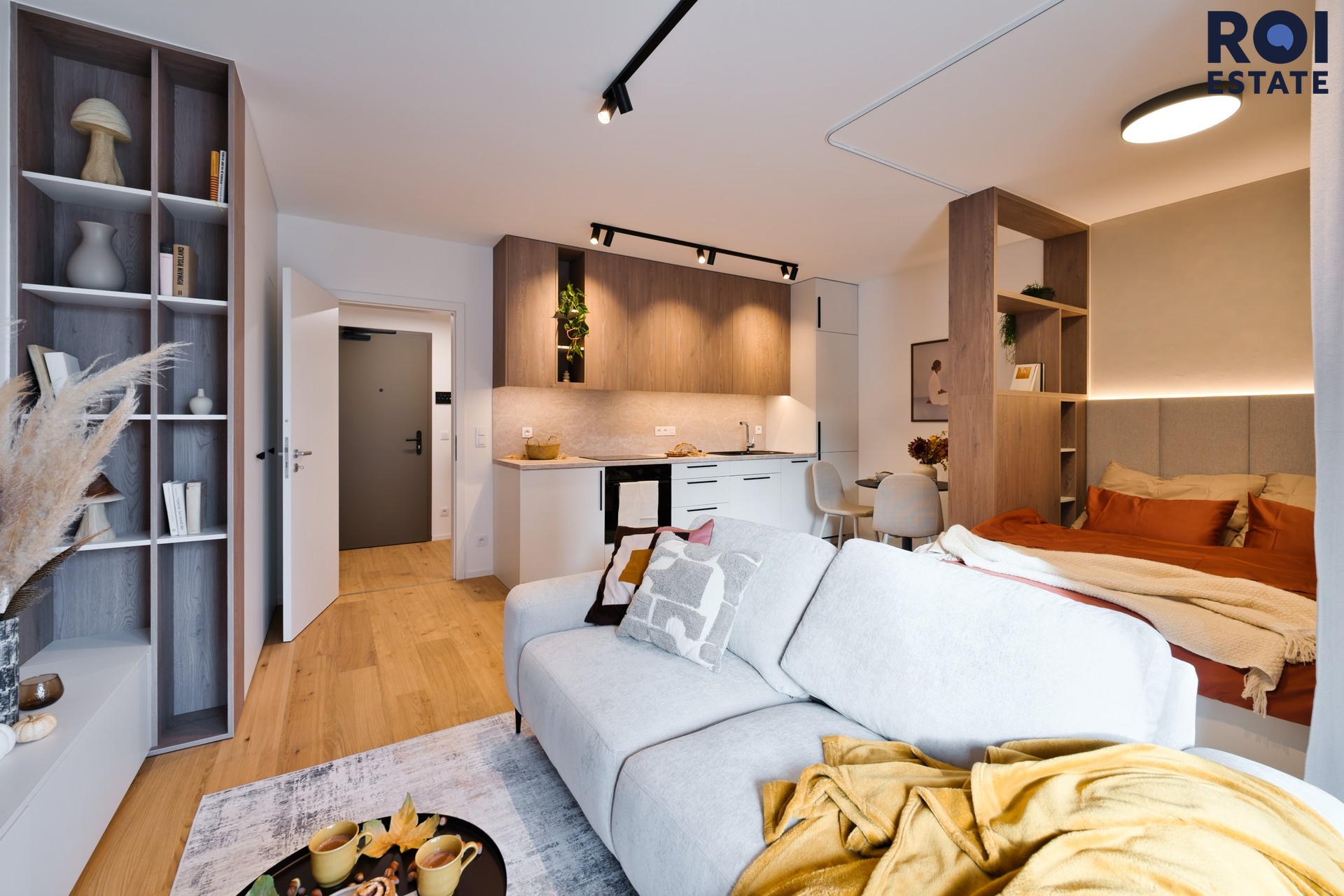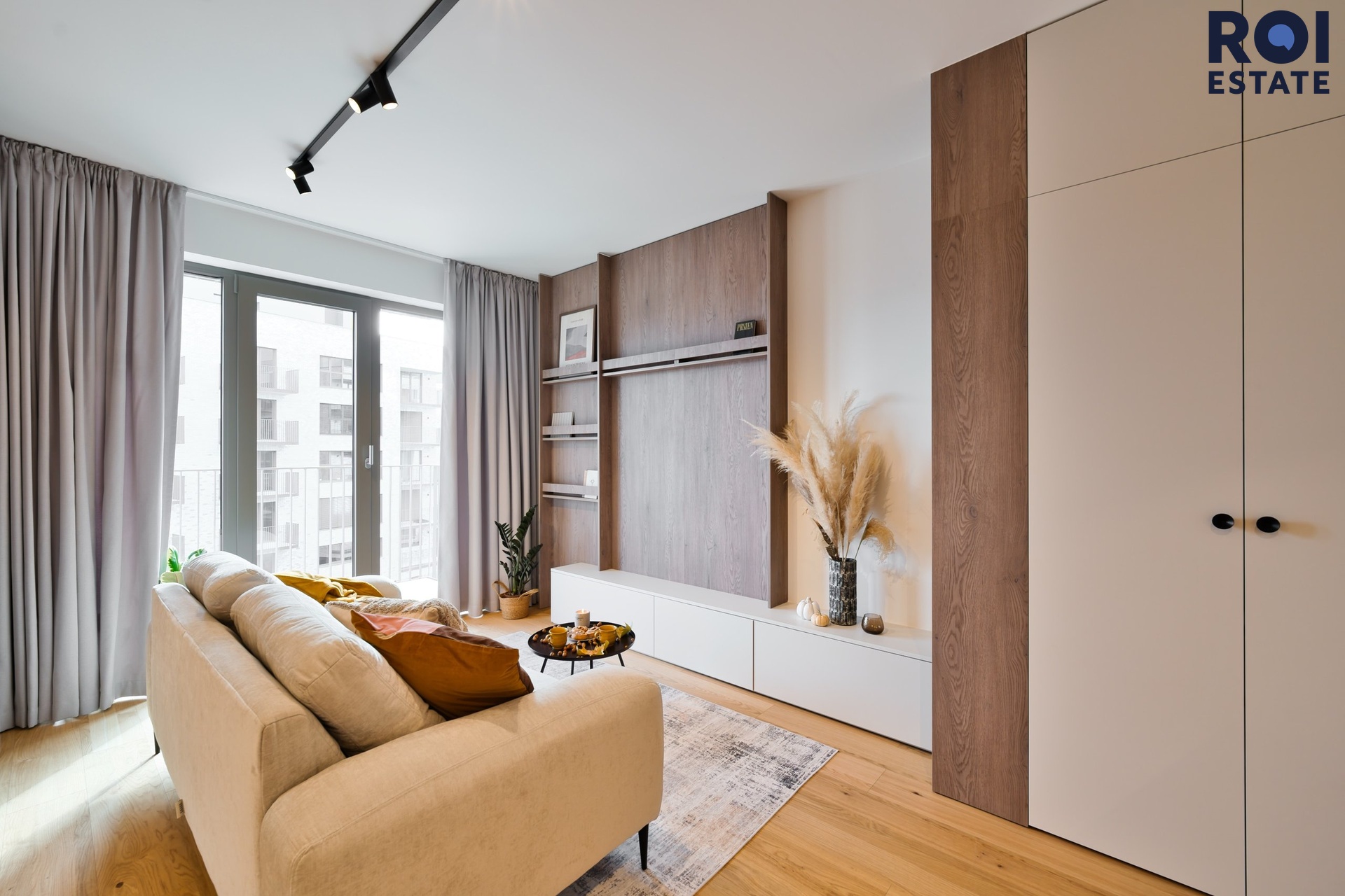 Nabízíme k pronájmu luxusní, plně vybavený byt 1+kk (39 m²) ve 4. patře ikonické novostavby na adrese Bratislavská 82. Tento byt není dílem náhody – o každý detail se postarala interiérová designérka, která proměnila kompaktní prostor v oázu stylu a funkčnosti.