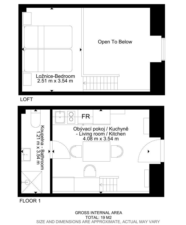Dispozice bytu:1+kk
