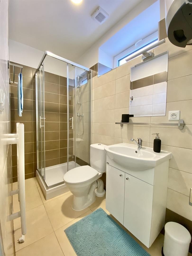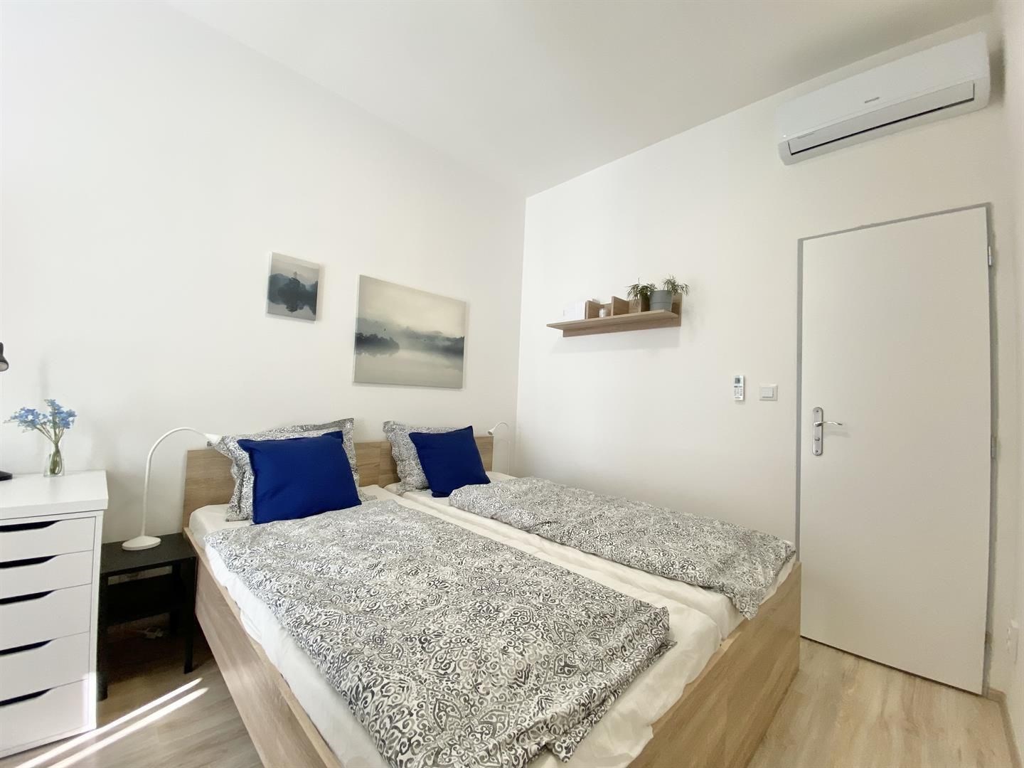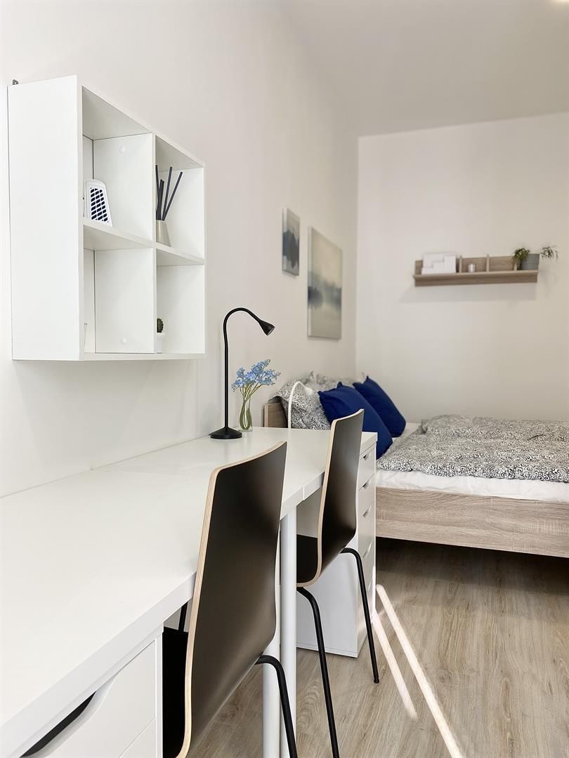 Jedná se o podnájem kompletně vybavené jednotky o dispozici 1+kk v zrekonstruovaném domě. Součástí vybavení kuchyně je plně zařízený kuchyňský kout, včetně lednice, sklokeramické desky, mikrovlnné trouby, varné konvice, digestoře a dřezu. Jednotka je vybavena pracovním stolem se židlemi, dvěma postelemi s nočními stolky a dostatečným prostorem na ukládání oblečení. Koupelna je také plně vybavená, a to sprchovým koutem, záchodem a umyvadlem se zrcadlem. K dispozici je příprava pro připojení vlastní pračky.