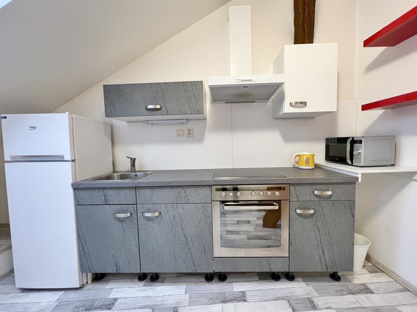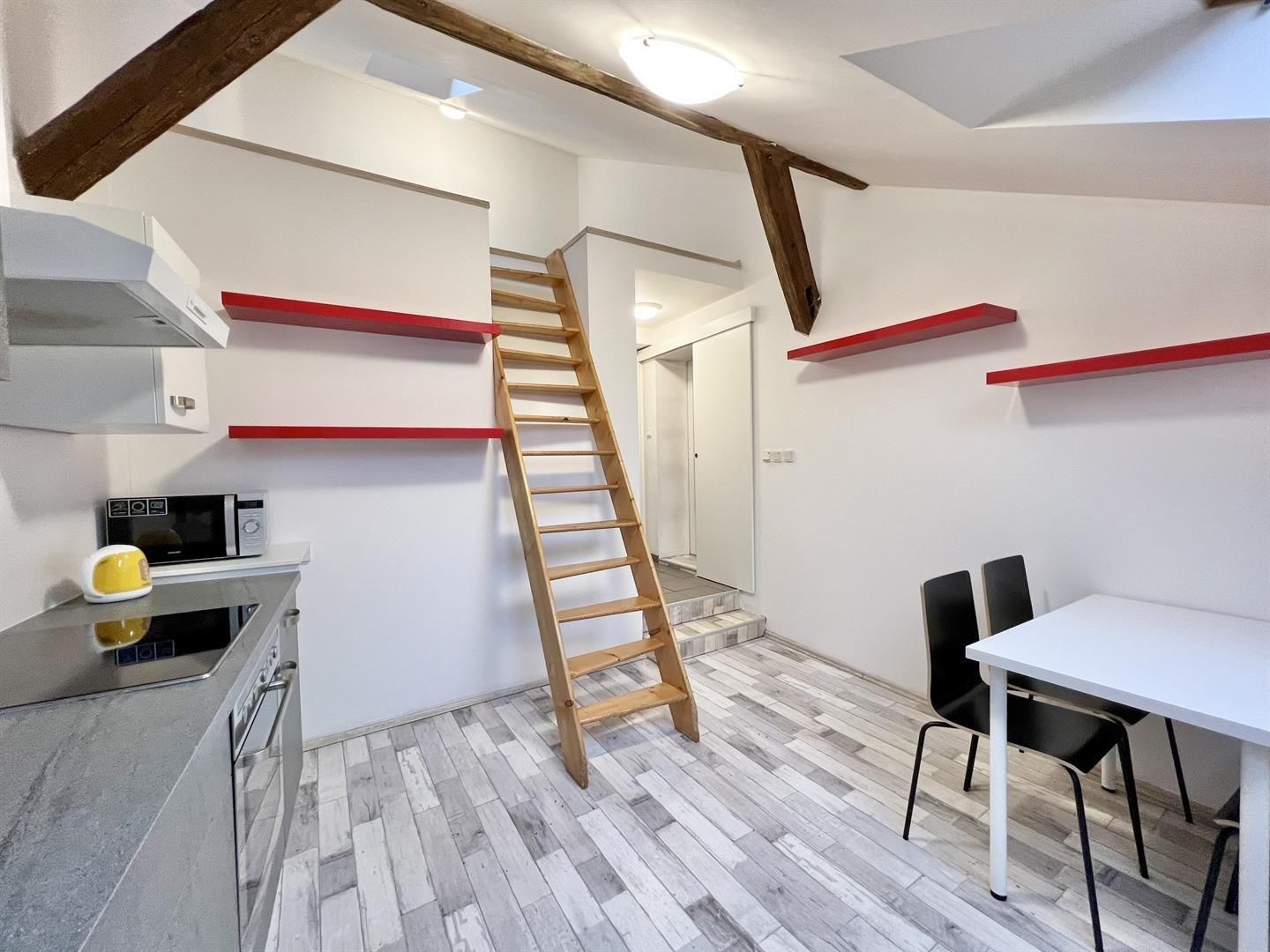 Jedná se o podnájem kompletně vybavené jednotky o dispozici 2+kk, která je vhodná až pro čtyři osoby. Dispozičně je řešena tak, aby se do jednotky daly umístit až čtyři lůžka. Jednotka se nachází v podkroví nově zrekonstruovaného domu. Jedná se o dvě oddělené místnosti, kuchyně a obývací pokoj a v každé z této místnosti se nachází ještě další prostor v mezonetu, který můžete využít buď jako ložnici či pracovnu. Součástí je kuchyně včetně lednice, sporáku s troubou, mikrovlnné trouby, rychlovarné konvice, digestoře a dřezu. Jednotka je dále vybavena pohodlným rozkládacím gaučem, jídelním stolem se židlemi, dvěma až čtyřmi postelemi s nočními stolky v mezonetovém prostoru, pracovním stolem a velkou skříní. Koupelna nabízí sprchovým kout, záchod a umyvadlo se zrcadlem. K dispozici je příprava pro připojení vlastní pračky.