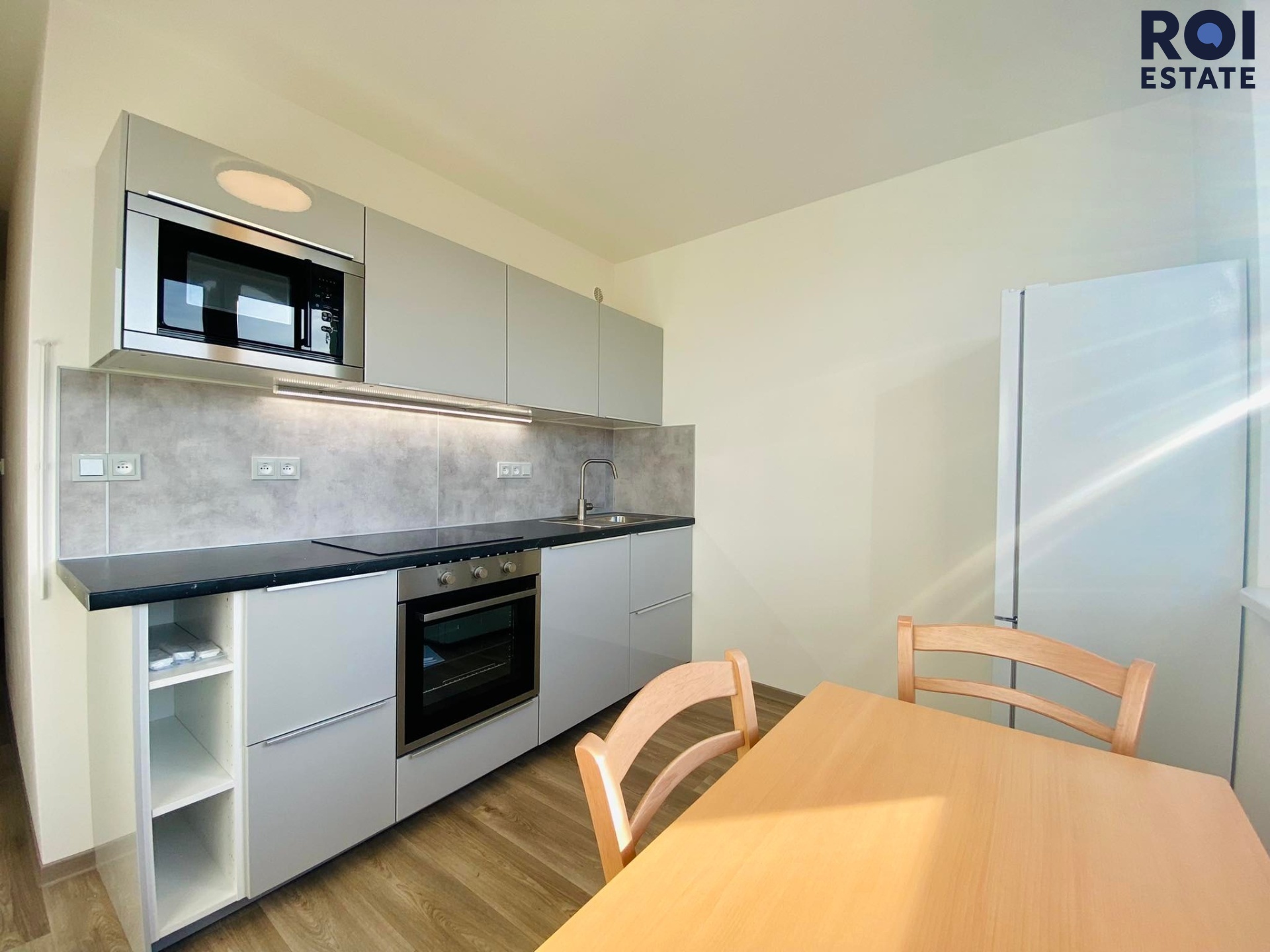 Prostorná chodba vás přivítá a vede do všech místností bytu. Moderní koupelna se sprchovým koutem a samostatná toaleta jsou prakticky vybavené, s místem pro pračku. Kuchyňská linka je kompletně vybavená – vestavěná myčka, mikrovlnná trouba a lednice čekají na vaše kulinářské nápady. Díky orientaci bytu je celý prostor krásně světlý a příjemně prosvětlený.