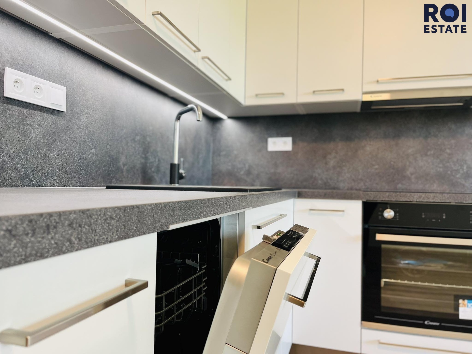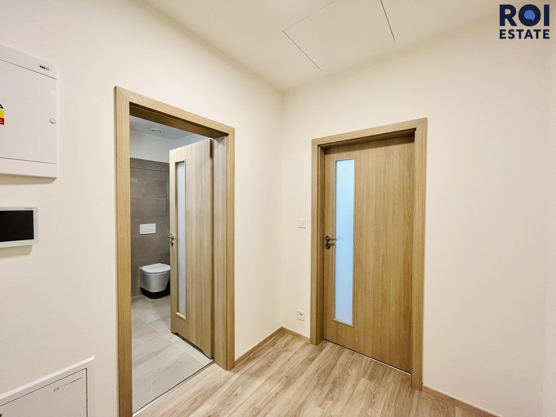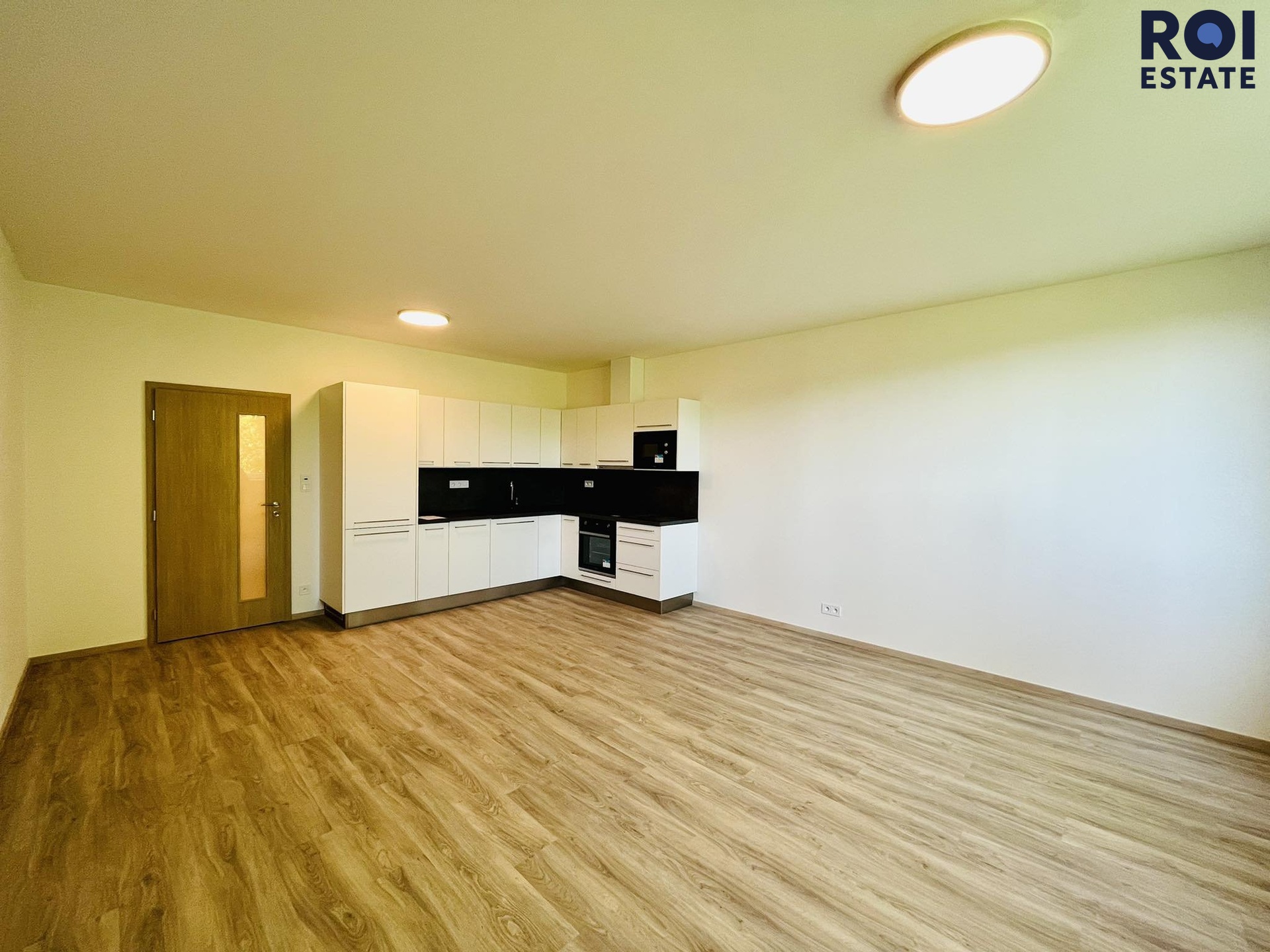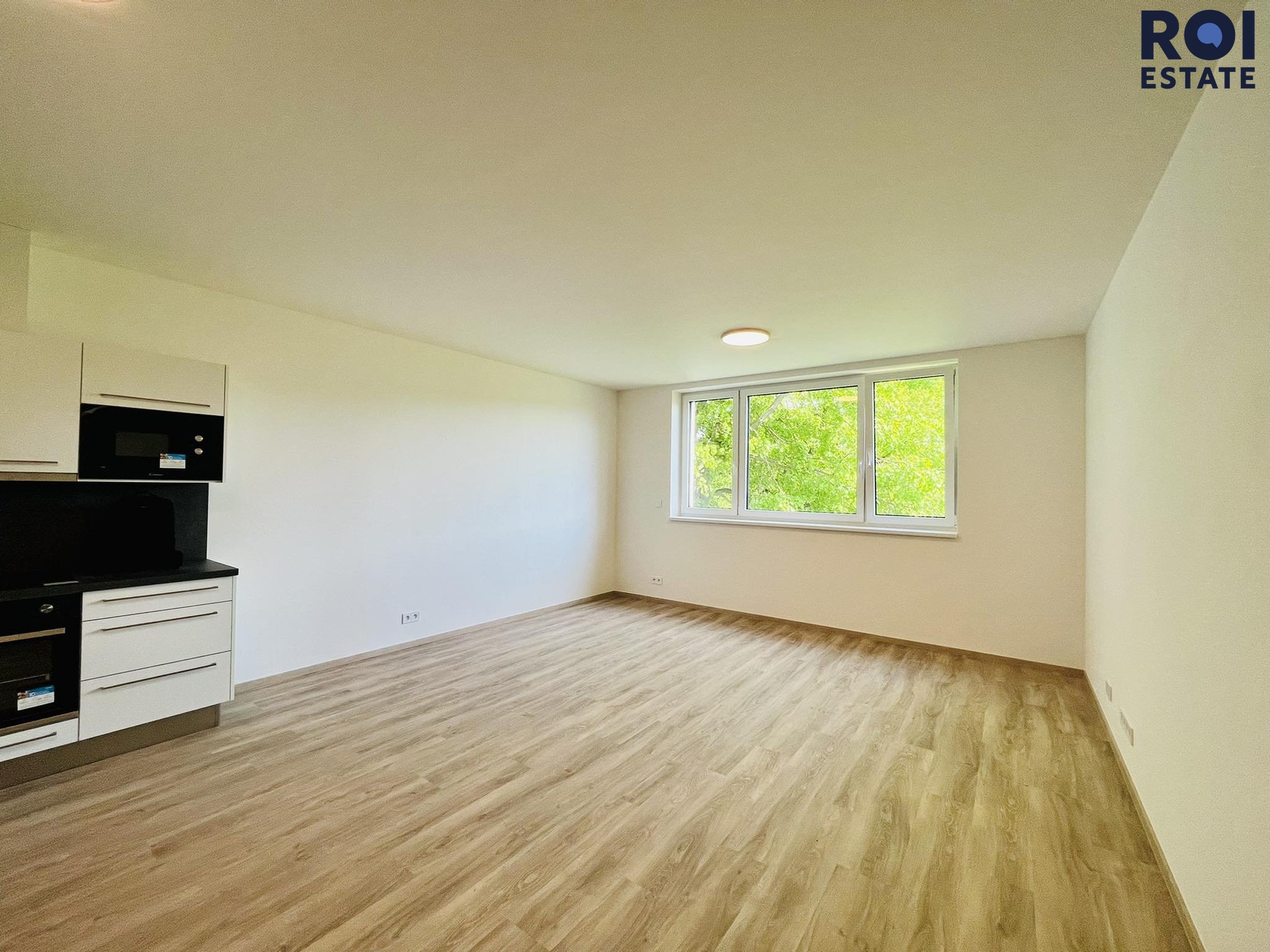 Již samotná budova Vás nadchne designem a zpracováním. Jsou zde použity kvalitní materiály včetně okrasného dřeva nebo velkoformátová dlažba s tvrzeným sklem. Při vstupu do nemovitosti se ocitneme v předsíni, která nás dostane do celého bytu. Po levé straně je krásná koupelna se sprchovým koutem a toaletou, můžete zde umístit své spotřebiče jako je například pračka či sušička nebo obojí. V rámci velké podlahové plochy je samostatný pokoj s kuchyňským koutem vhodný jak pro sedačku, postel nebo dva pracovní stoly. Vše si můžete zařídit dle Vašich potřeb a představ. Fantazii se meze nekladou! Kuchyňská linka byla vyrobena na míru a jsou zde spotřebiče jako například lednice s mrazákem, troubou či myčkou. Indukční deska je samozřejmostí. Pokud máte starost o tom, že byste v bytě cítili teplo, tak se bát nemusíte. Okna jsou vybavena předokenními žaluziemi typu Z, které zajistí tepelný komfort v domácnosti. Největší výhodou jsou také chlazené stropy, kde si sami nastavíte teplotu, kterou v nemovitosti chcete mít. Už Vás tak teda nebude trápit nepohodlí, nemoci či bolavé klouby z klimatizace.