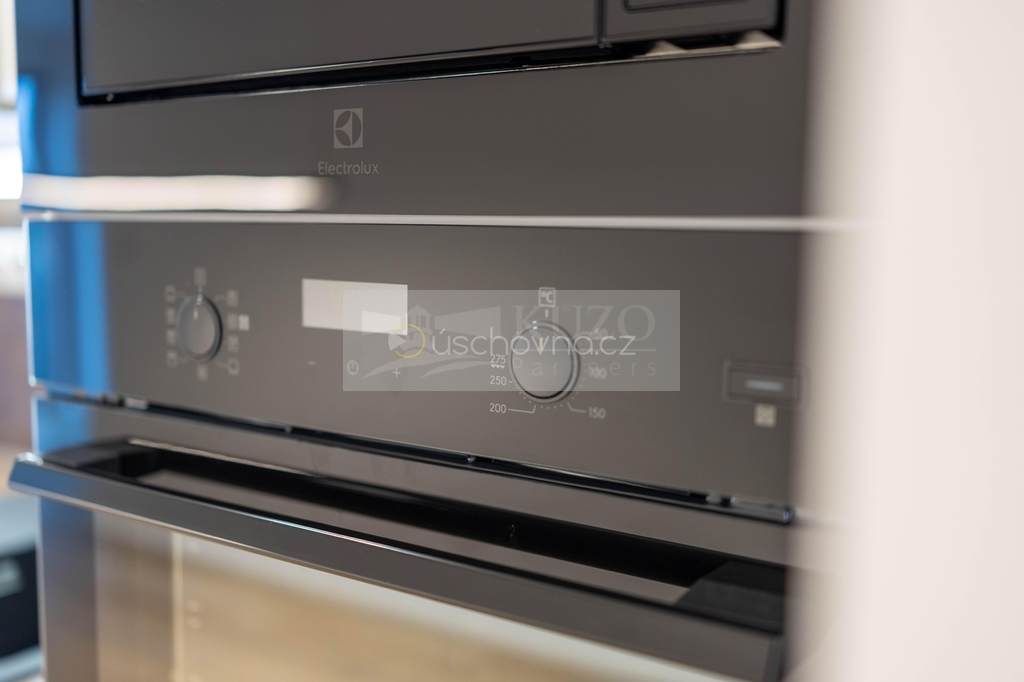 V bytě je podlahové vytápění, elegantní vinylové podlahy, rekuperace v pobytových místnostech a velkoformátová okna s trojskly.
