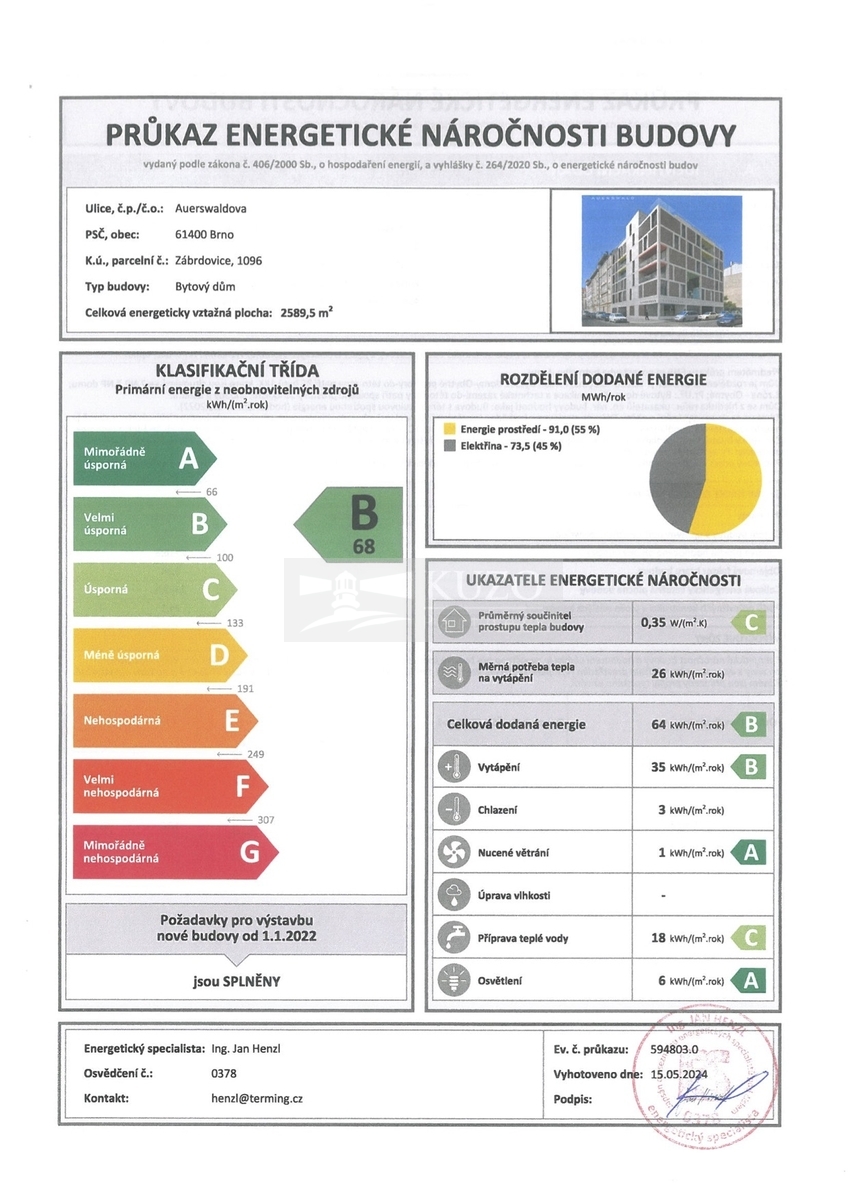 Nízké provozní náklady zajišťuje PENB třídy B.