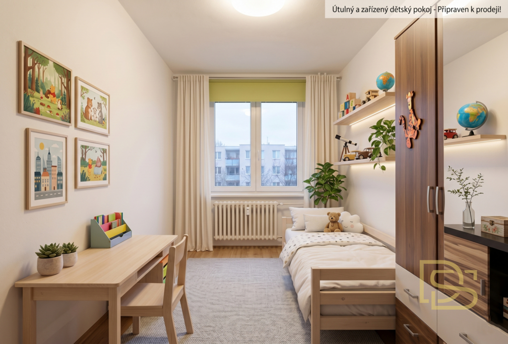 Okna jsou plastová, na podlahách plovoucí podlaha a keramická dlažba. K bytu náleží sklepní kóje.