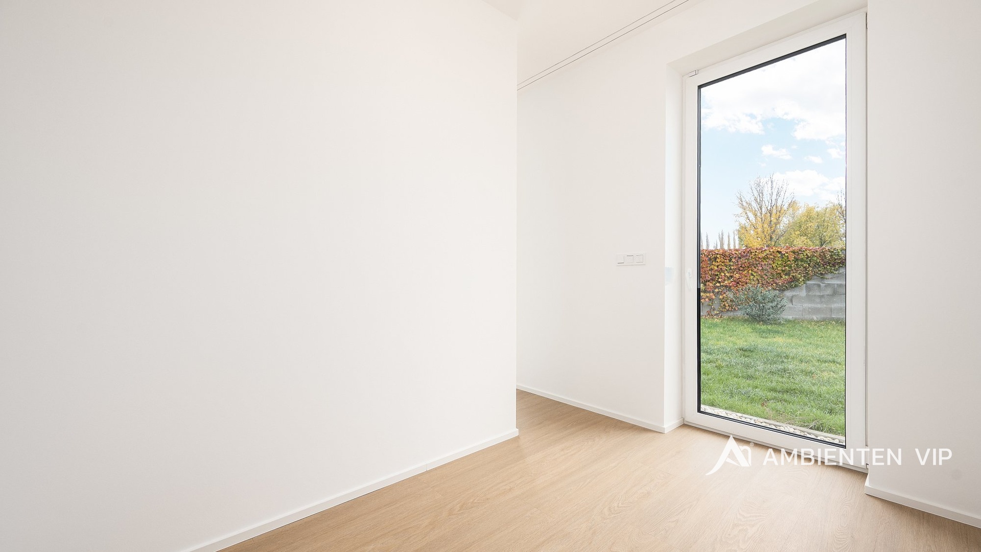 Byt nabízí praktické zádveří, koupelnu a hlavní obytný prostor s kuchyňským koutem. Z obytného prostoru je přímý vstup na terasu, která navazuje na soukromou zahradu. Venkovní parkovací stání je součástí uzavřeného areálu před viladomem a je zabezpečeno dálkově ovládanou závorou.