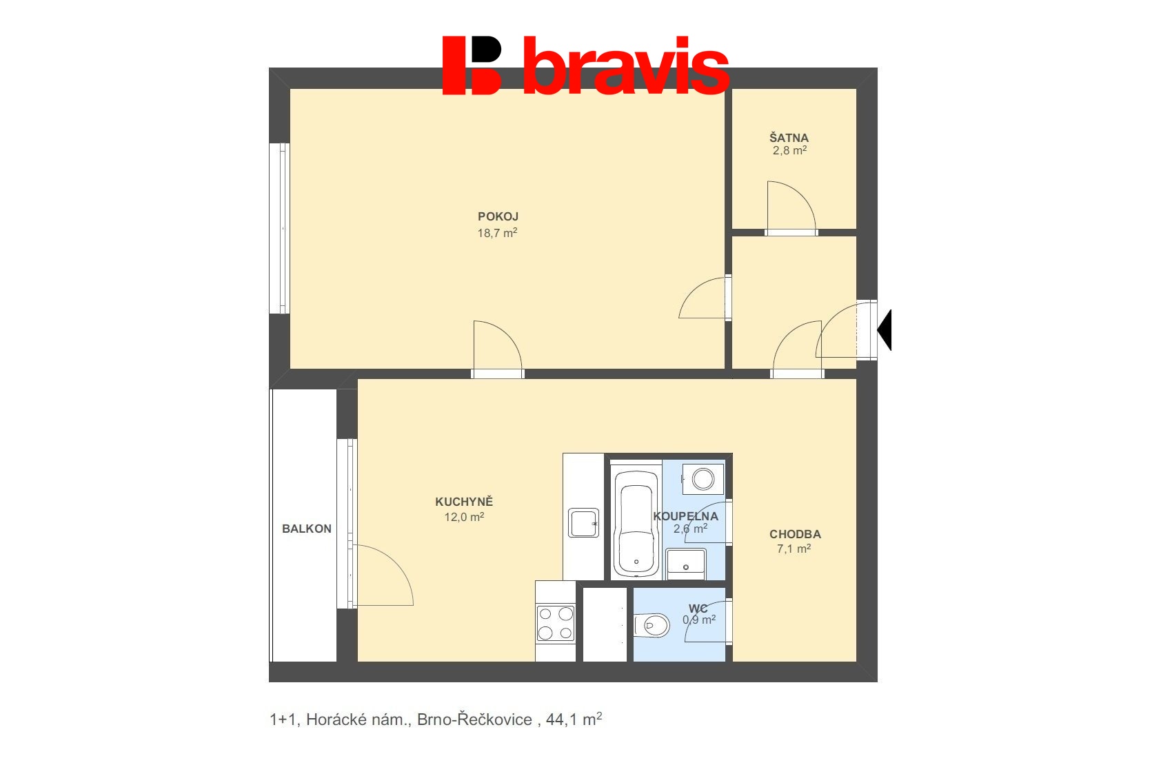 Prodej bytu 1+1 44 m², ul. Horácké náměstí, Brno - Řečkovice, balkon, sklep, klidná lokalia