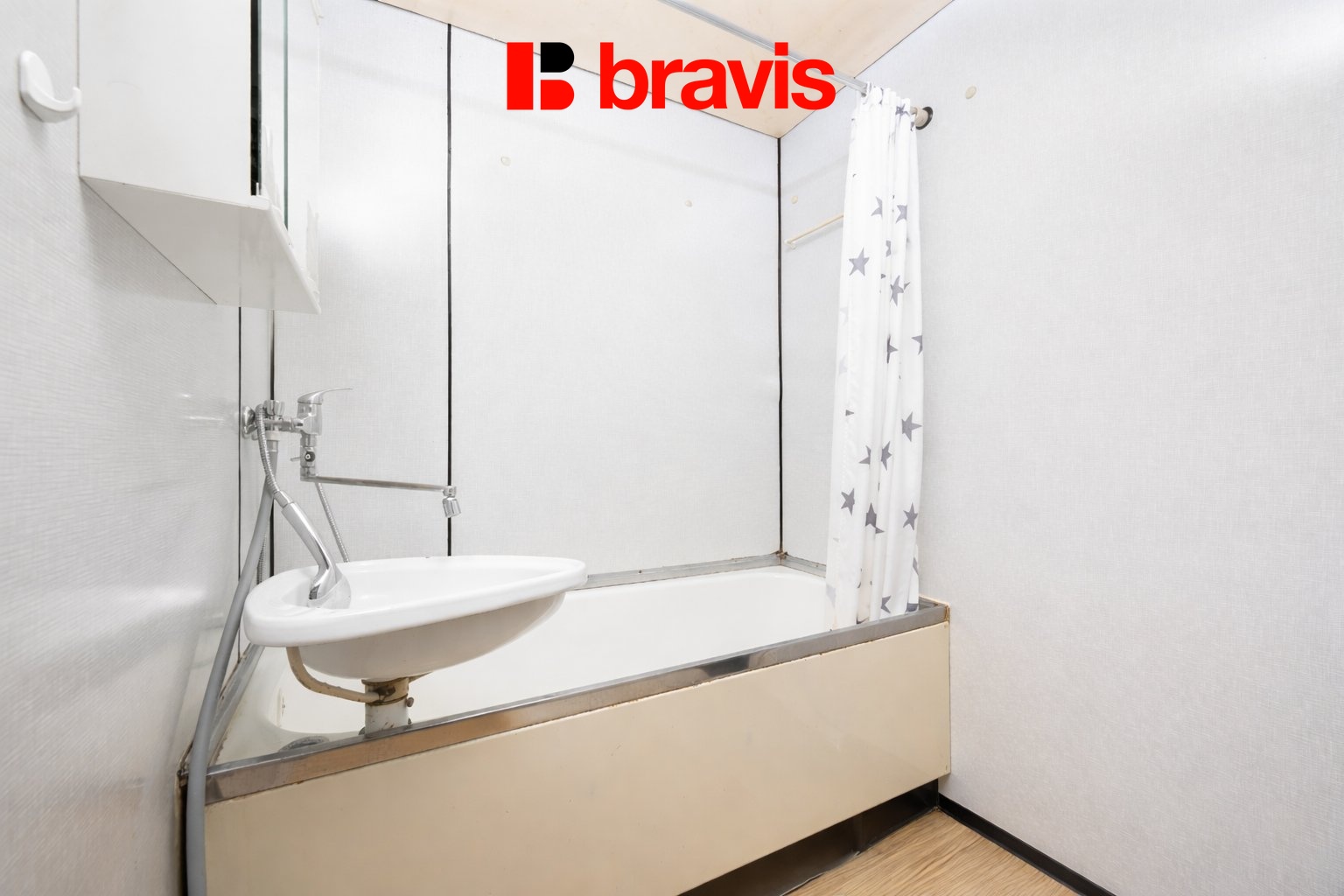 Koupelna je vybavena vanou a umyvadlem, je zde prostor s přípojkou na pračku.