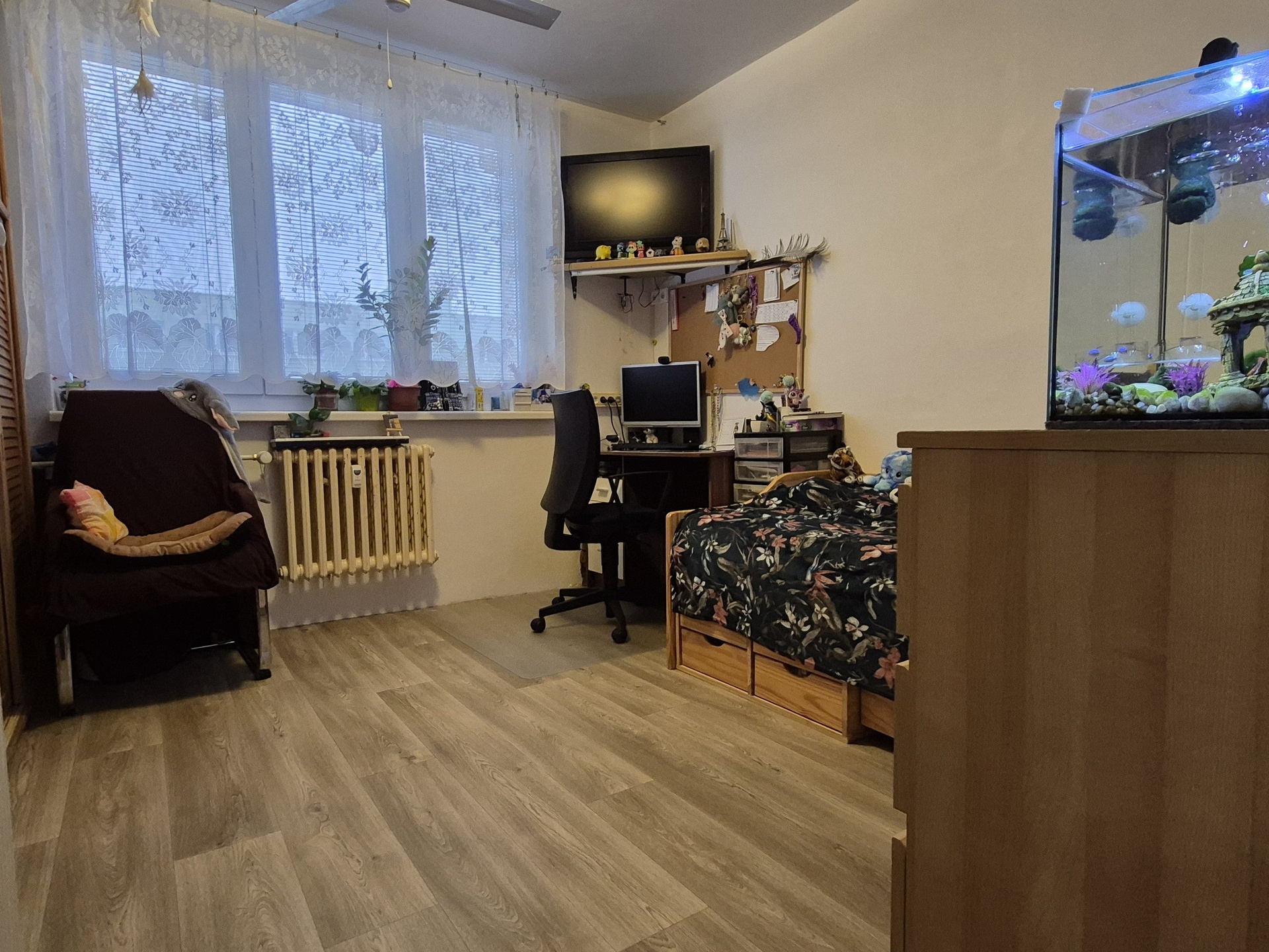 Aktuální platby: 4375Kč (z toho fond oprav 1384Kč) + elektřina, plyn