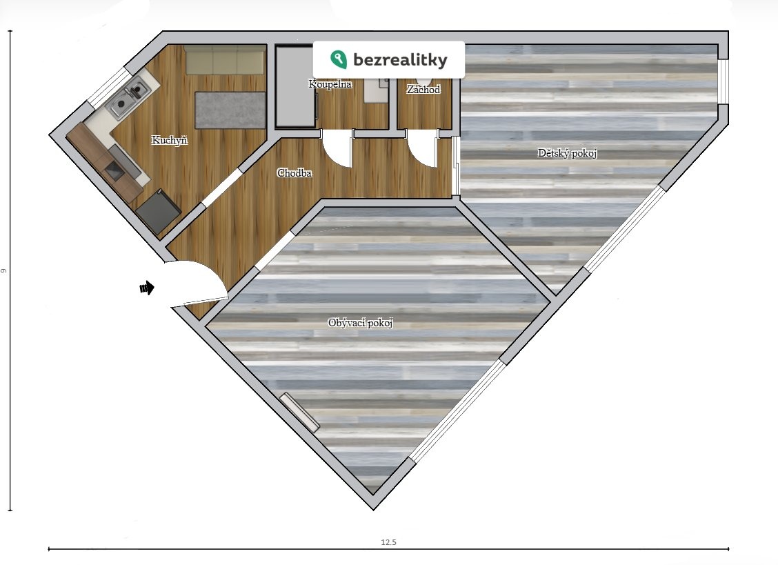 Na fotkách je homestaging pomocí AI, pro lepší představu.
