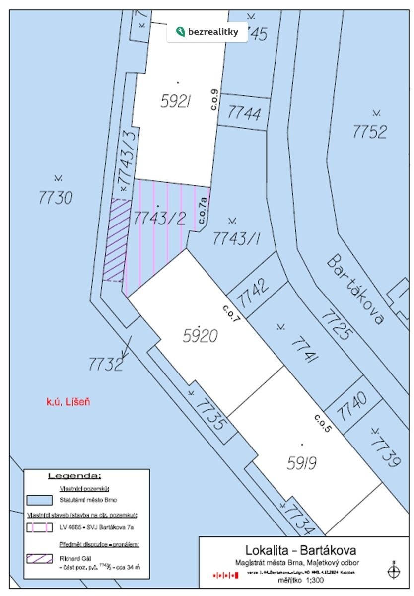 Součástí nemovitosti je také sklep na stejném patře o ploše 1,3 m², který nabízí praktické úložiště pro sezónní věci či další nezbytnosti. Pro pohodlné parkování je k dispozici parkovací stání před domem a velké parkoviště z ulice Novolíšeňská.