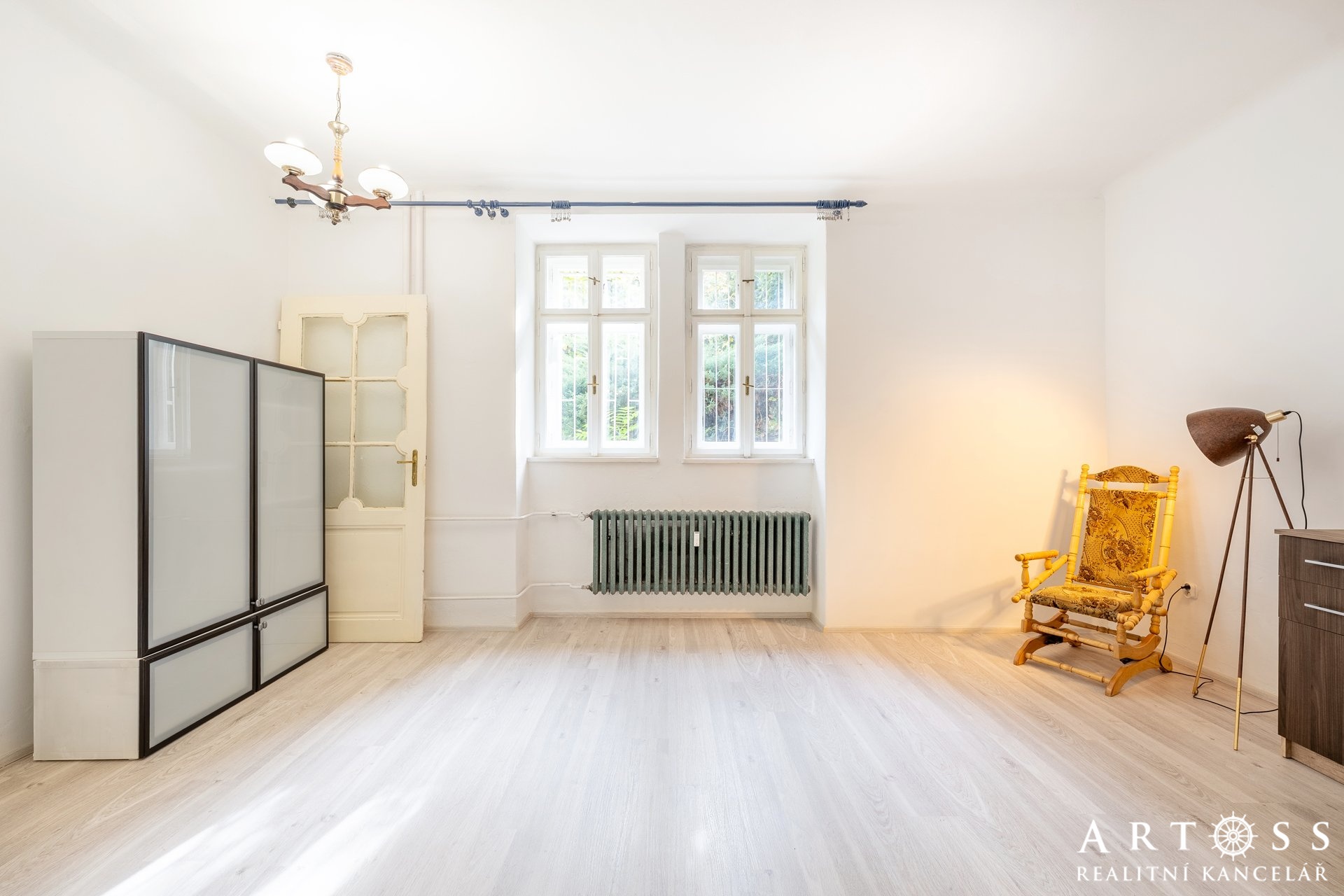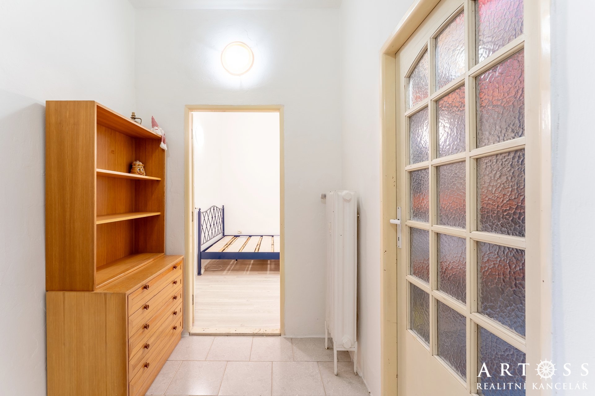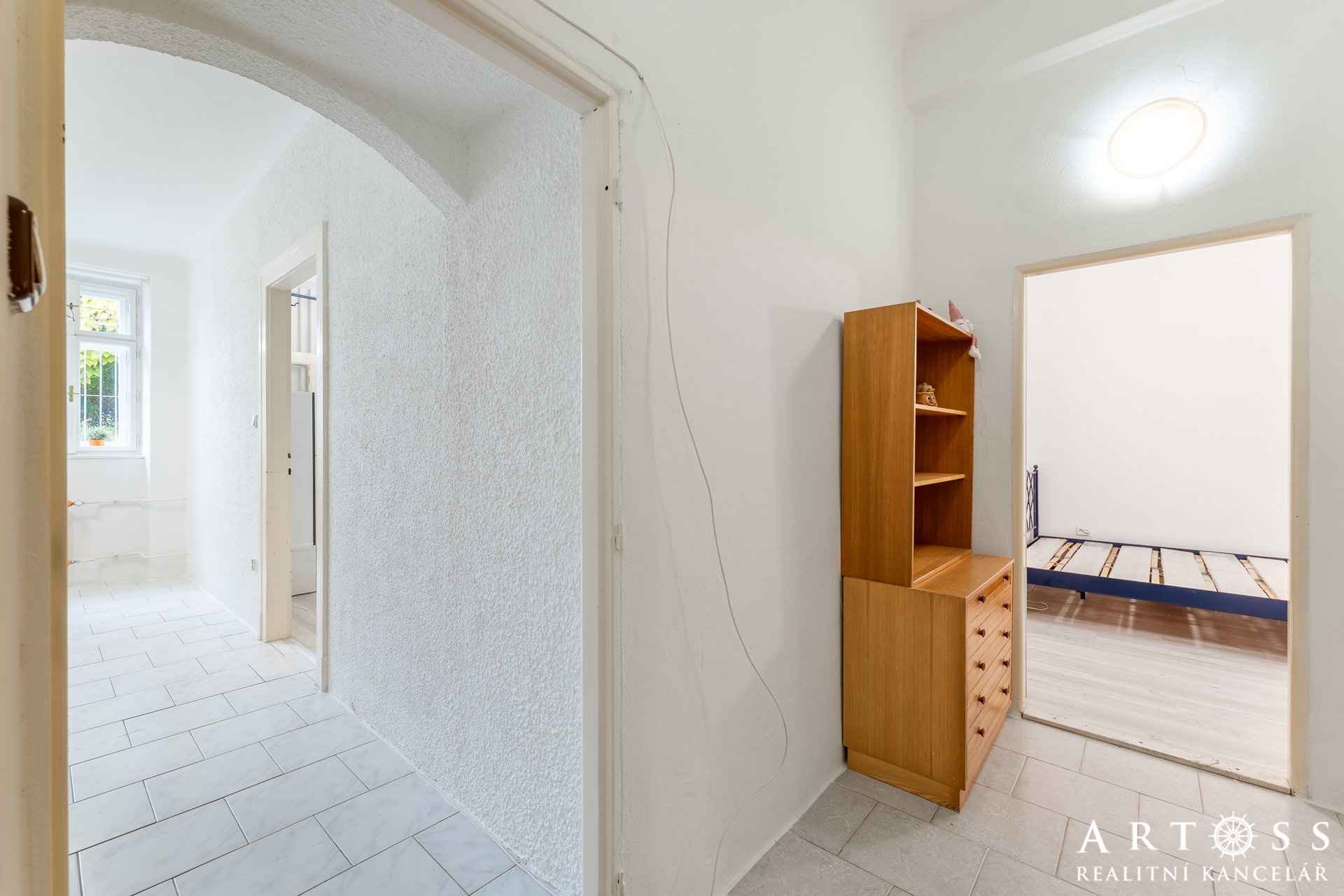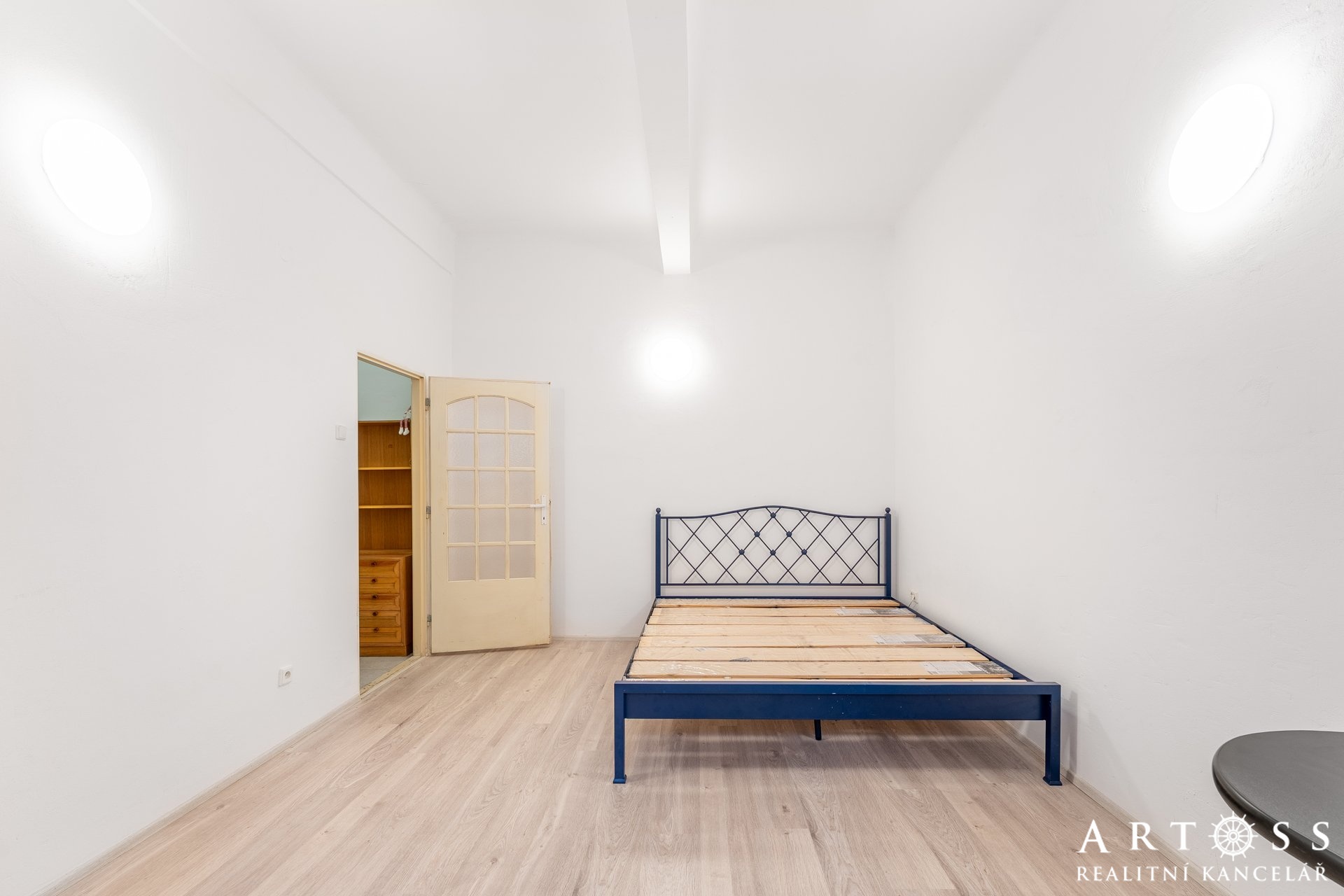 Byt má dva velké pokoje a menší místnost, kterou dnes majitelé využívají jako úložný prostor, ale ideálně poslouží i jako pracovna nebo malý pokoj pro hosty či dítě. Momentálně je vybaven praktickými regály. Obývací pokoj je vybaven vestavnou skříní na míru přes celou délku pokoje. Všechny pokoje mají samostatné vstupy.