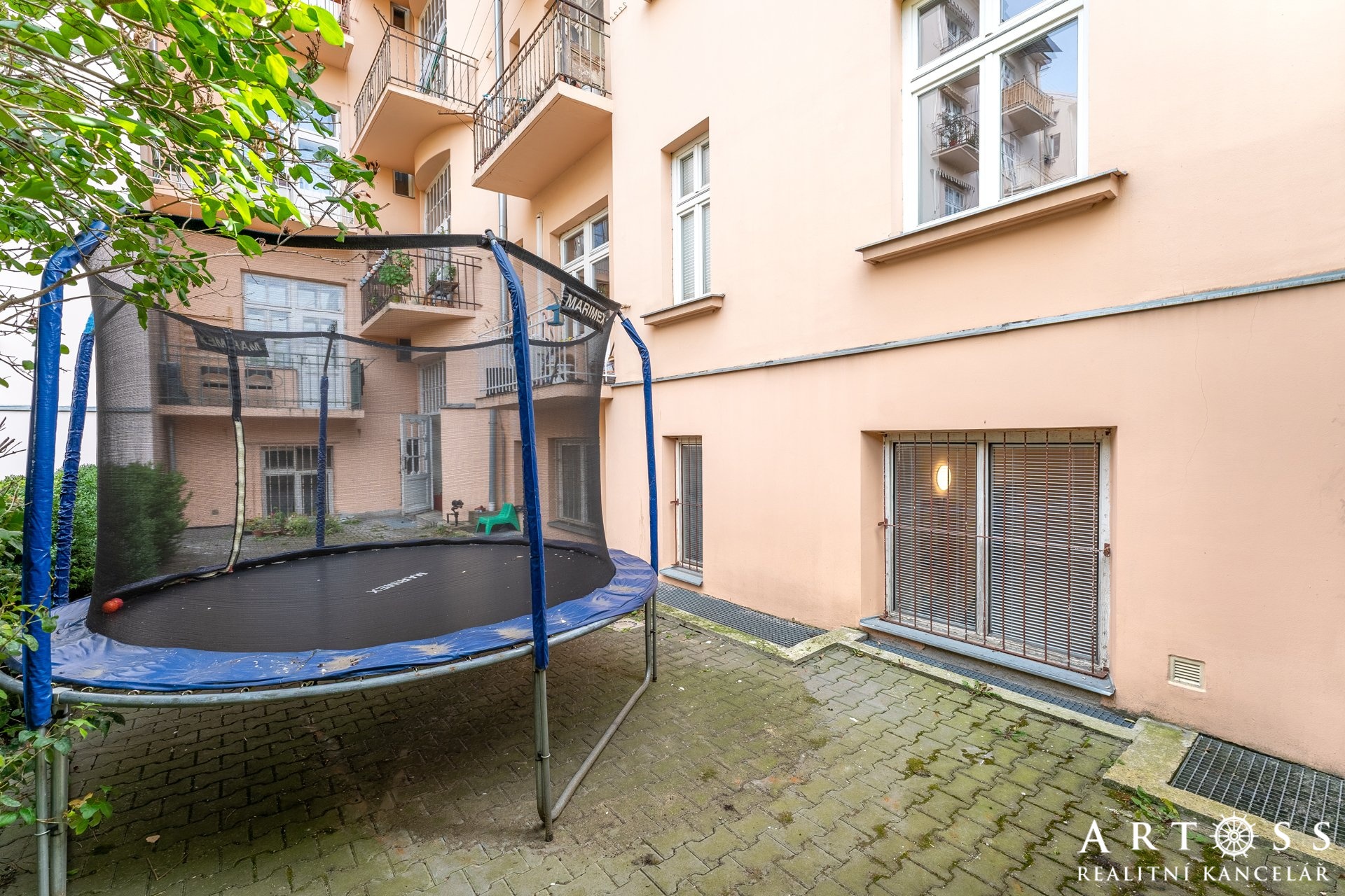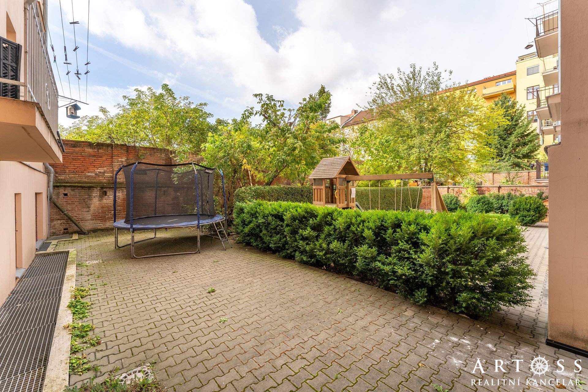 Za domem najdete společný dvůr, kde je prostor pro děti. A přestože jste v centru města, z oken bytu vidíte do vnitrobloku a zahrádky – absolutní klid a soukromí.
