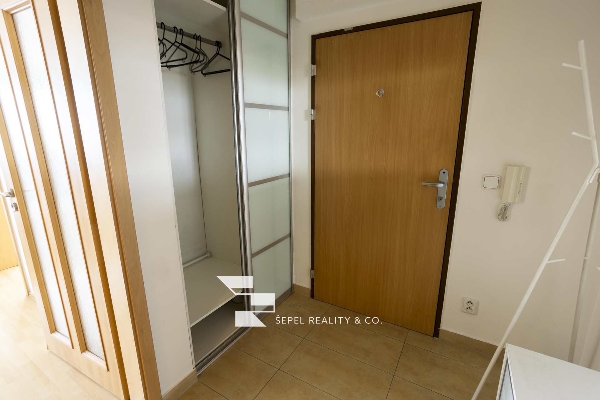 Byt nabízí praktické a efektivně řešené uspořádání o podlahové ploše 49,90 m². Po vstupu do bytu se ocitnete v předsíni, jejíž součástí je vestavěná šatní skříň poskytující dostatek úložného prostoru na oblečení i obuv. Z předsíně vedou samostatné vstupy do koupelny s toaletou, jejíž součástí je také pračka, a dále do obývacího pokoje s kuchyňským koutem.