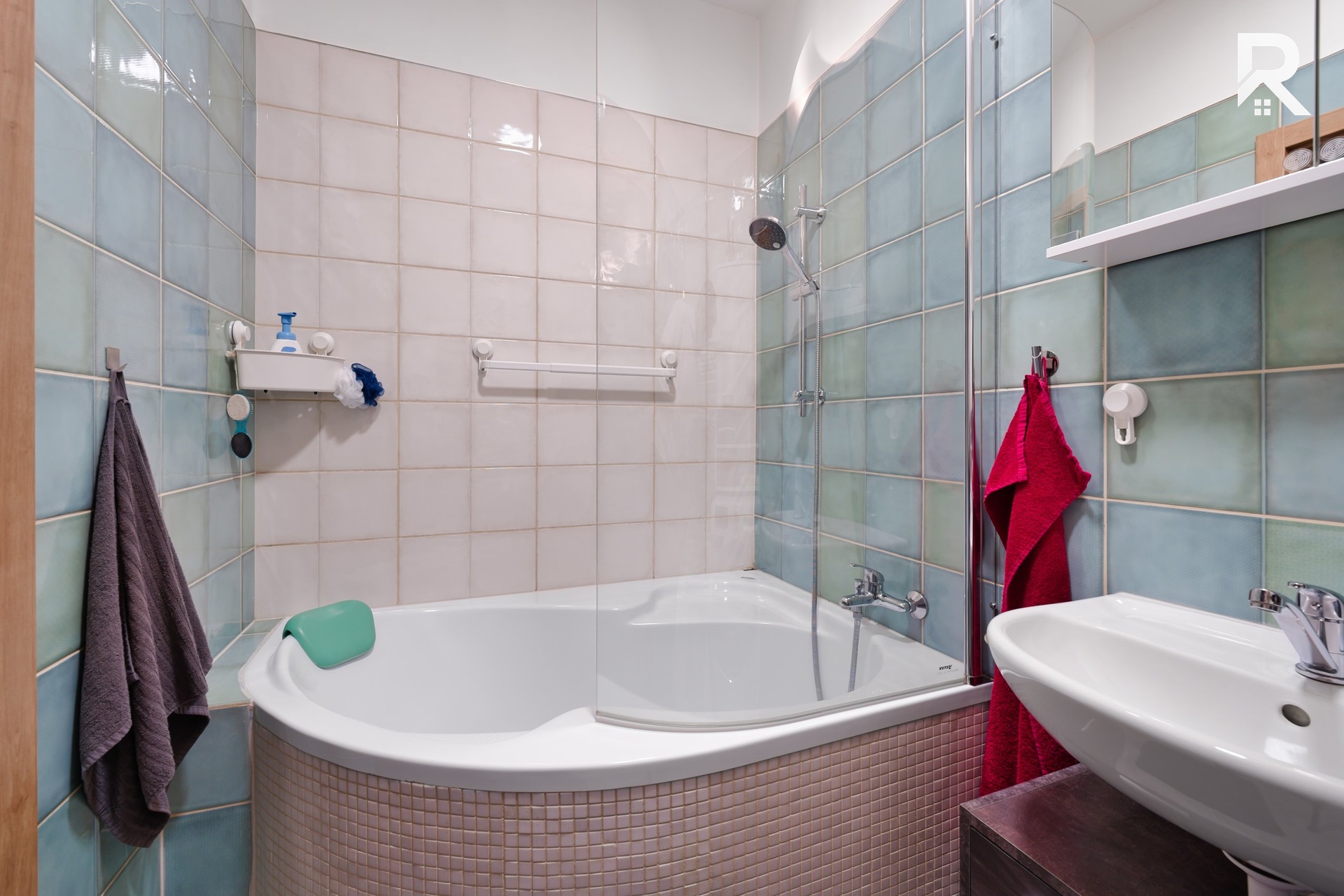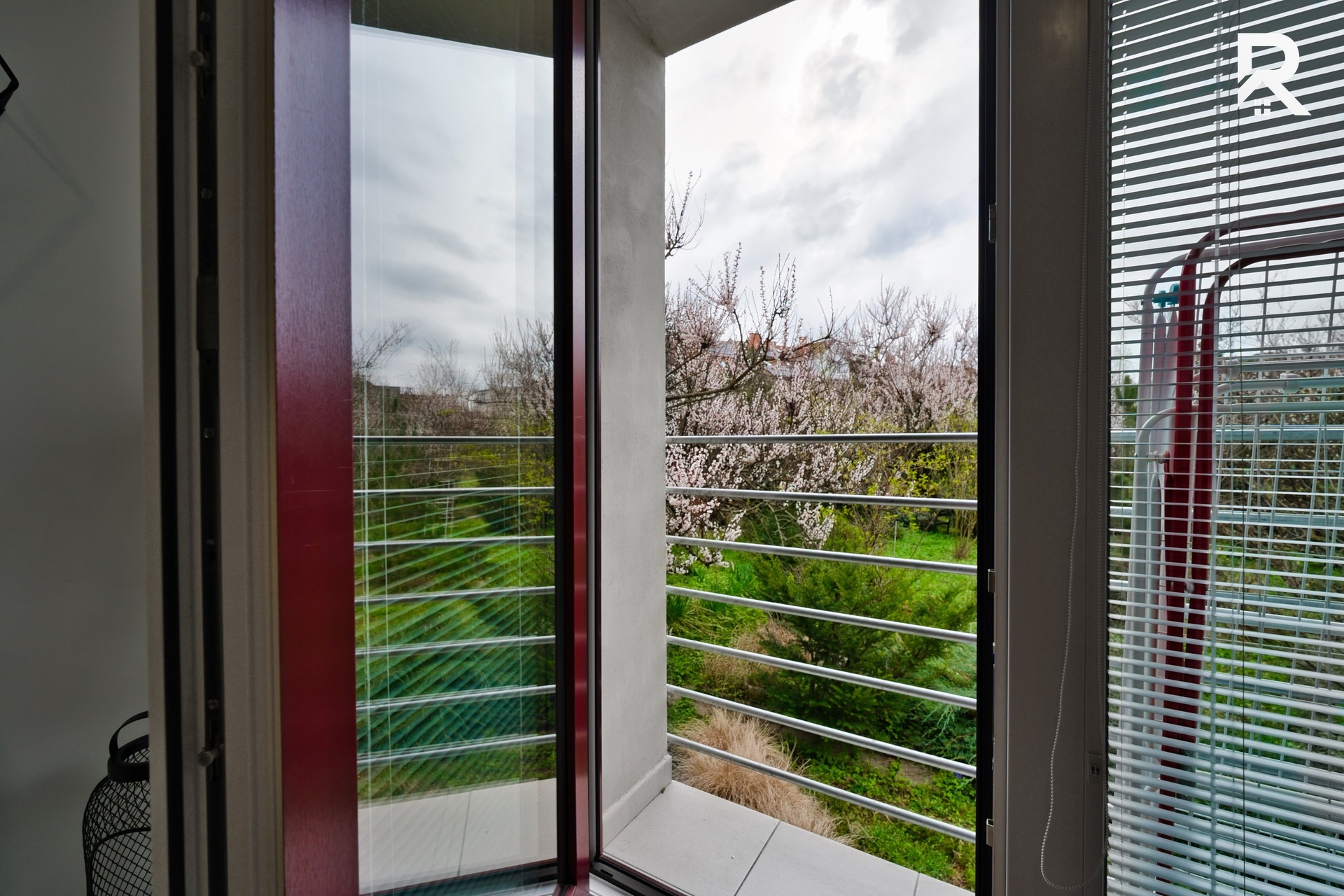 Z balkonu se díváte přímo do klidné zahrady ve vnitrobloku, což zajišťuje příjemné soukromí a ticho bez ruchu ulice. K bytu navíc náleží i praktický sklep o velikosti 6m2
