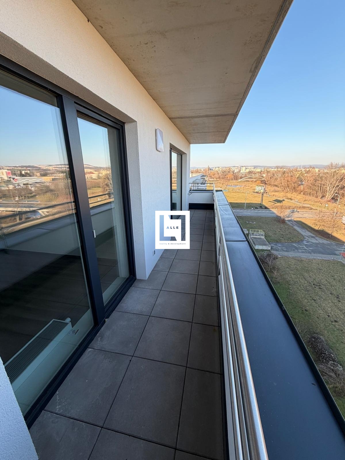K prodeji Vám exkluzivně nabízíme byt v oblíbené novostavbě – Rezidence Svratka v Brně. Rezidence – etapa B je nově zkolaudovaný developerský projekt nacházející se v katastrálním území Horní Heršpice. Byt o dispozici 2+kk je situovaný v posledním (7.NP) budovy. Na patře se nachází pouze 4 bytové jednotky. Byt má výměru 53,5 m2 s terasou 11 m2. Přes prostornou chodbu se samostatnou šatnou vstupujete do obývacího pokoje s přípravou pro kuchyňskou linkou. Ložnice má 14,2 m2. Z obou neprůchozích pokojů je výstup na prosluněnou terasu příjemné výměry. V koupelně naleznete vanu se zástěnou, umyvadlo, přívod pro pračku a sušičku. Toaleta je umístěna samostatně. Byt je nádherně prosluněný a působí vzdušně díky velkým oknům. Standardy bytu byly v rámci klientských změn doplněny o kvalitní vinylové podlahy, designové baterie a sprchovou zástěnu. V obou pokojích naleznete jednotku klimatizace. K bytu náleží jedno vyhrazené parkovací stání v garáži přímo pod bytem + sklep. Uvedená cena nezahrnuje garážové parkovací místo, které je k dokoupení.