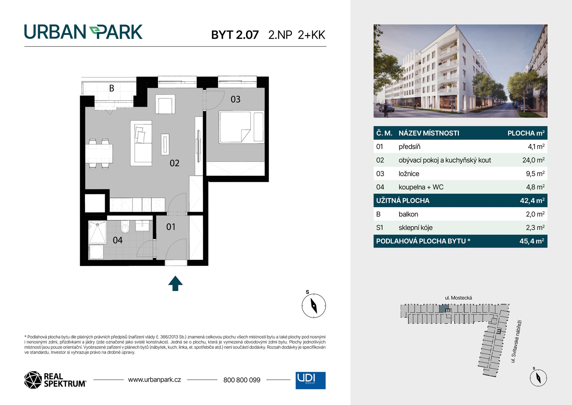 | Dispozice/podlahová plocha: | 2+kk/45 m² |