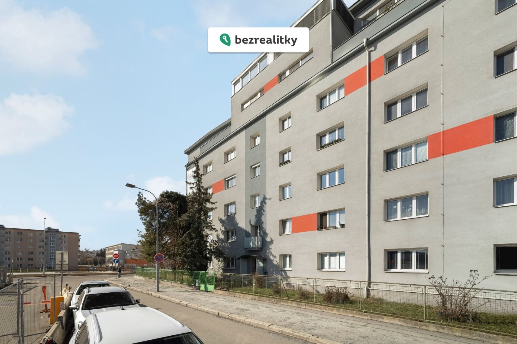 Byt se nachází v cihlovém zatepleném domě, ve druhém patře s výtahem. Bytový dům stojí naproti hokejové arény, takže mu nestíní žádná vysoká budova a díky tomu poskytuje hezké výhledy a výborné denní světlo a sluneční svit.